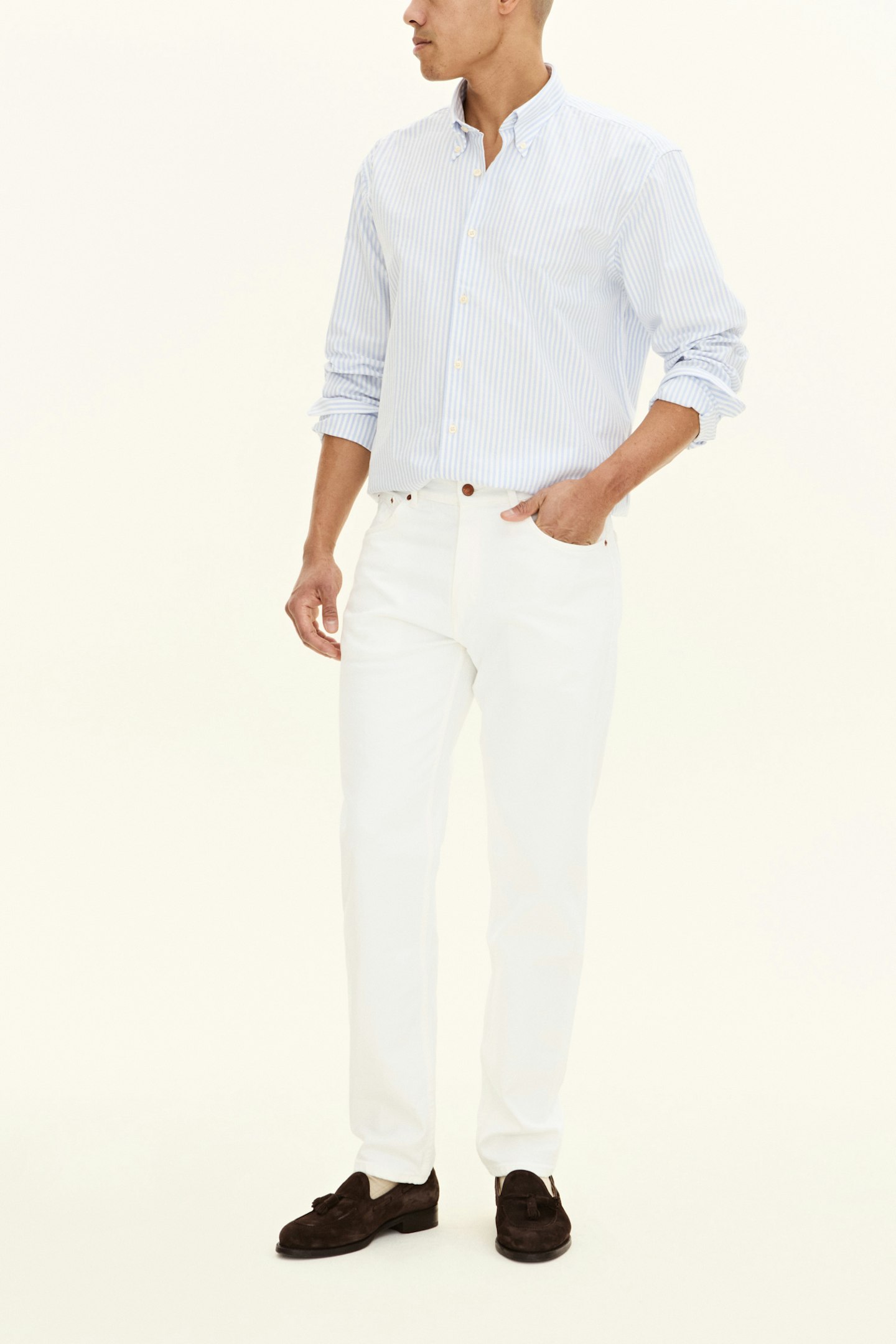 The fit has a loose top and knees with a narrow bottomleg, the waist normal to high. Made of stretch denim from Candiani in Italy, which is woven on old, used looms from Levis with buttons and rivets from Italy and Borås. The jeans are made of 100% sustainably grown cotton. Hem width: 34 cm in size W32/L32