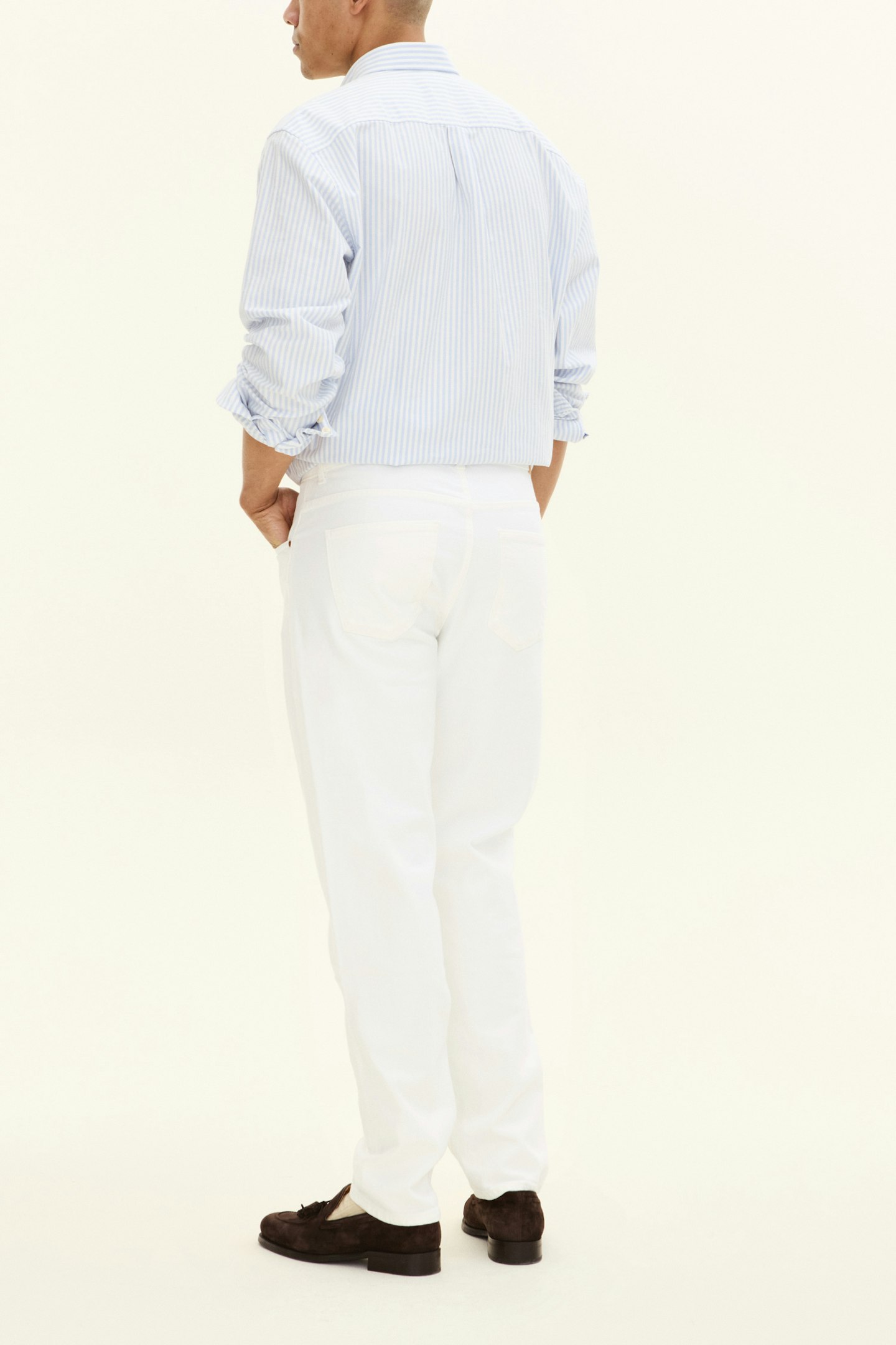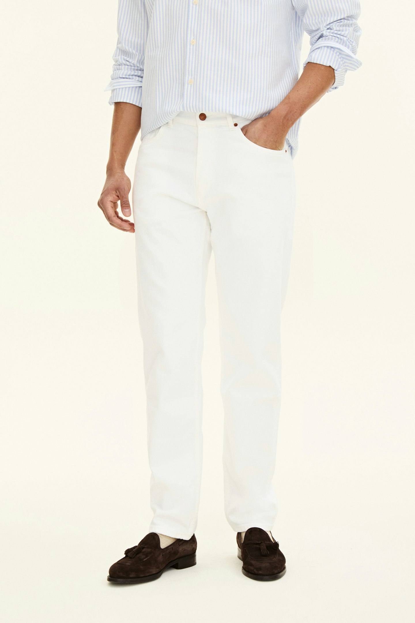 The fit has a loose top and knees with a narrow bottomleg, the waist normal to high. Made of stretch denim from Candiani in Italy, which is woven on old, used looms from Levis with buttons and rivets from Italy and Borås. The jeans are made of 100% sustainably grown cotton. Hem width: 34 cm in size W32/L32