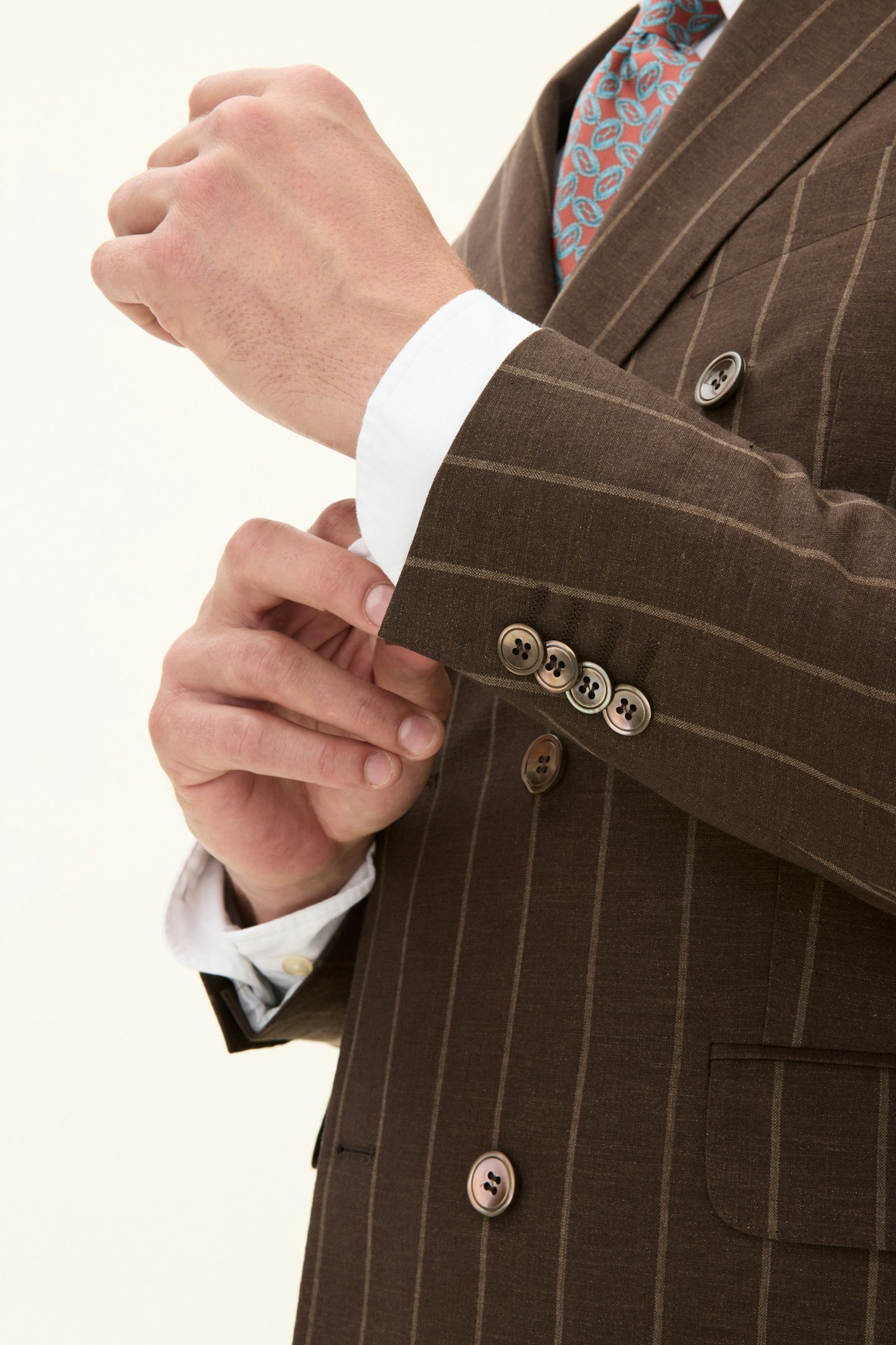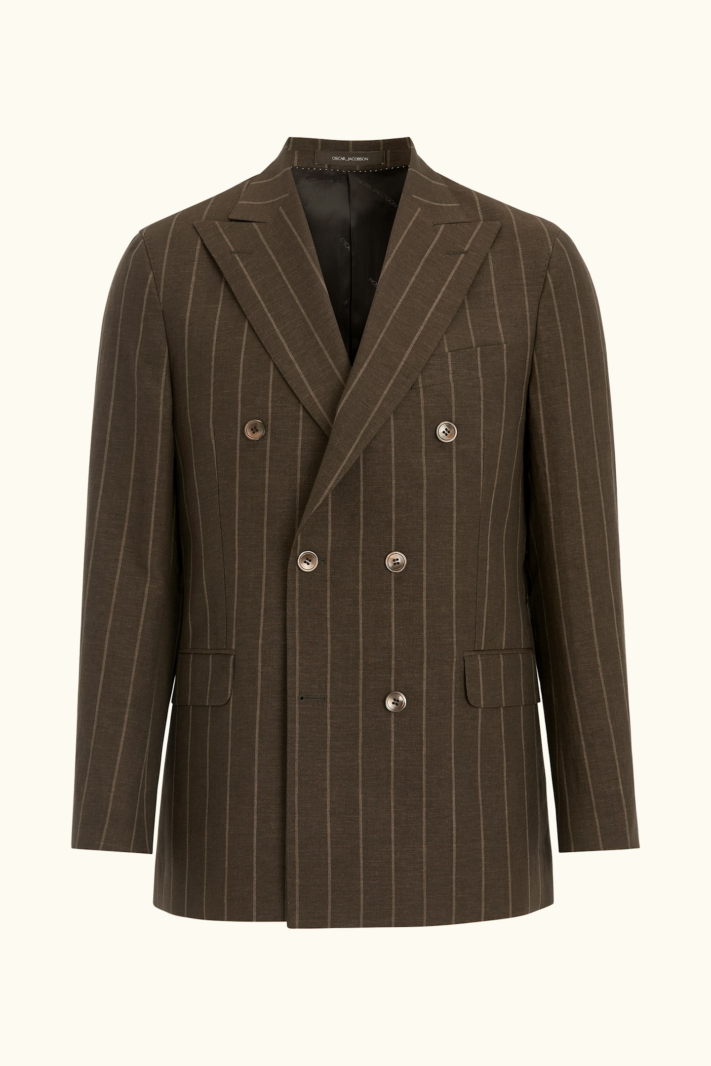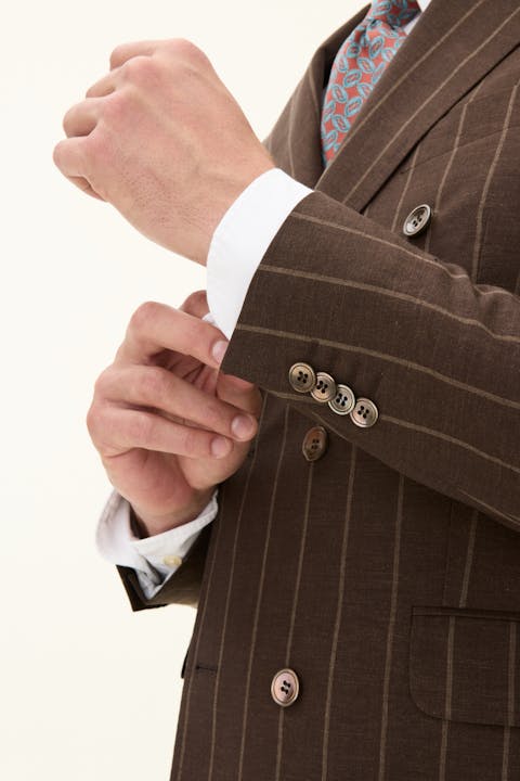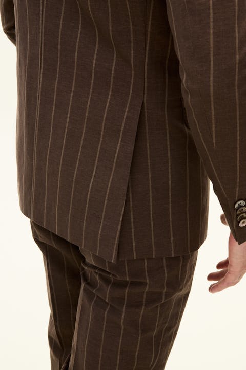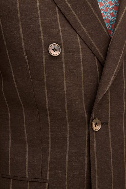 Regular Fit Double Breasted Striped Linen Wool Blazer
