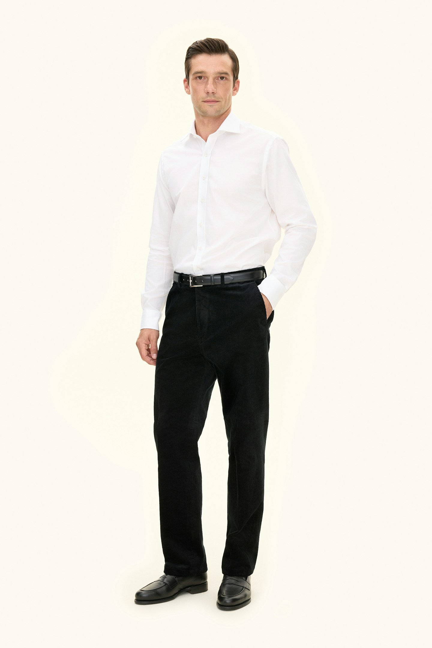 These trousers with a high waist, crafted from a carefully selected cotton blend, balance everyday comfort with refined aesthetics. The tailored regular fit creates a sharp silhouette with a while allowing for all-day ease of movement.