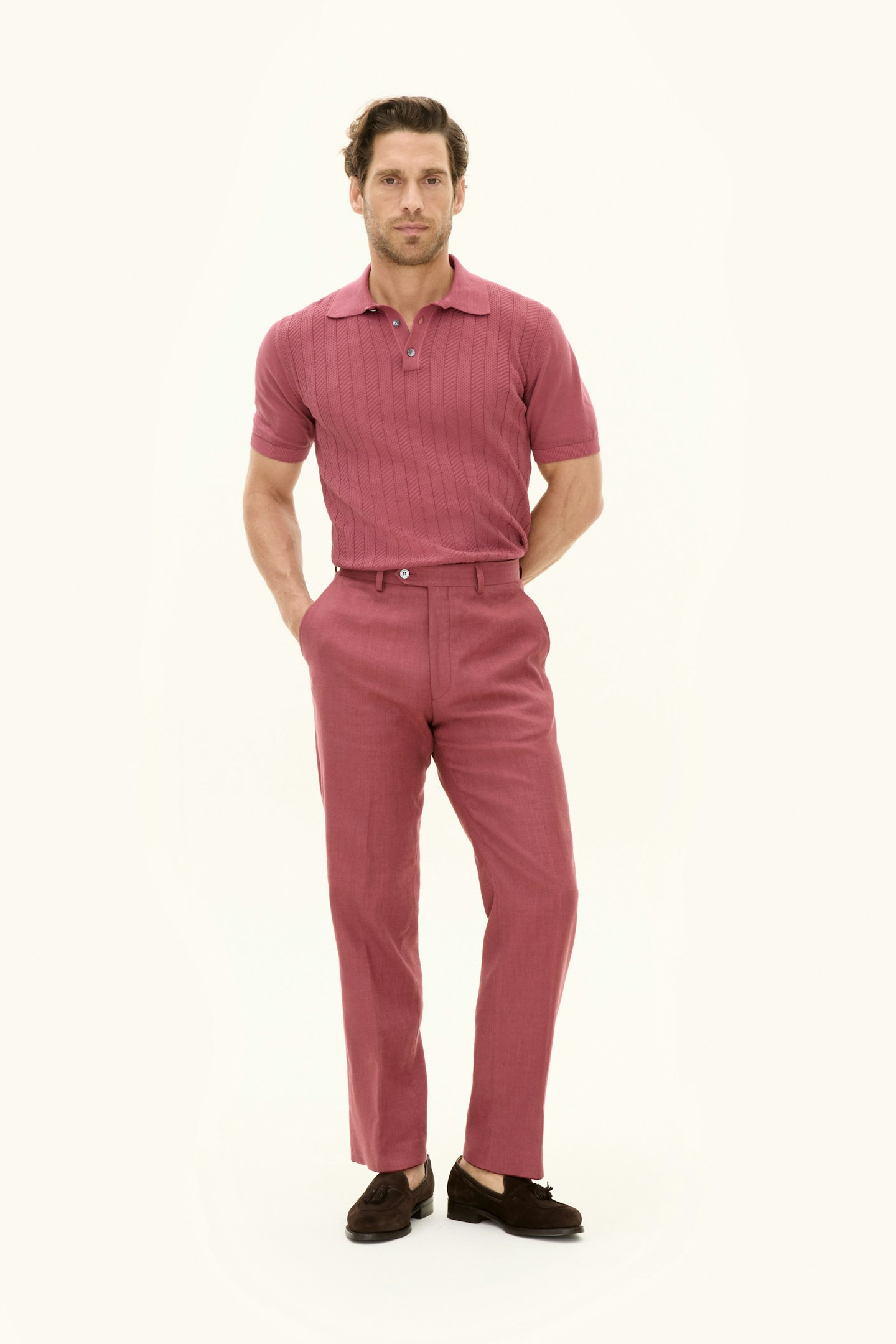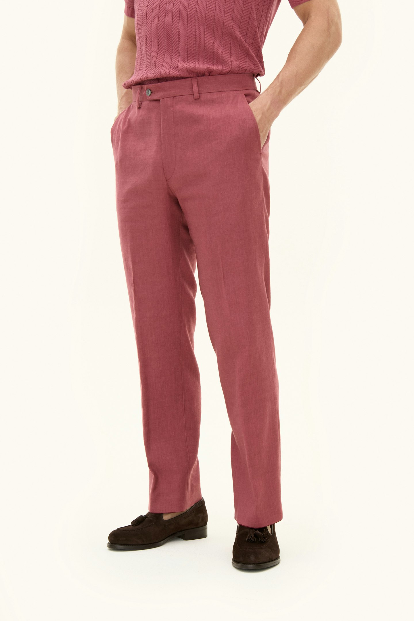 Crafted from a breathable linen blend, these trousers offers a regular fit. They are designed with a timeless twill pattern, crafted using woven construction. A refined essential for effortless elegance.