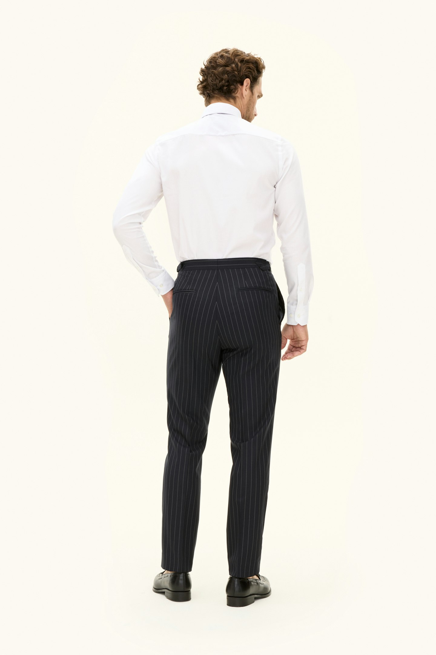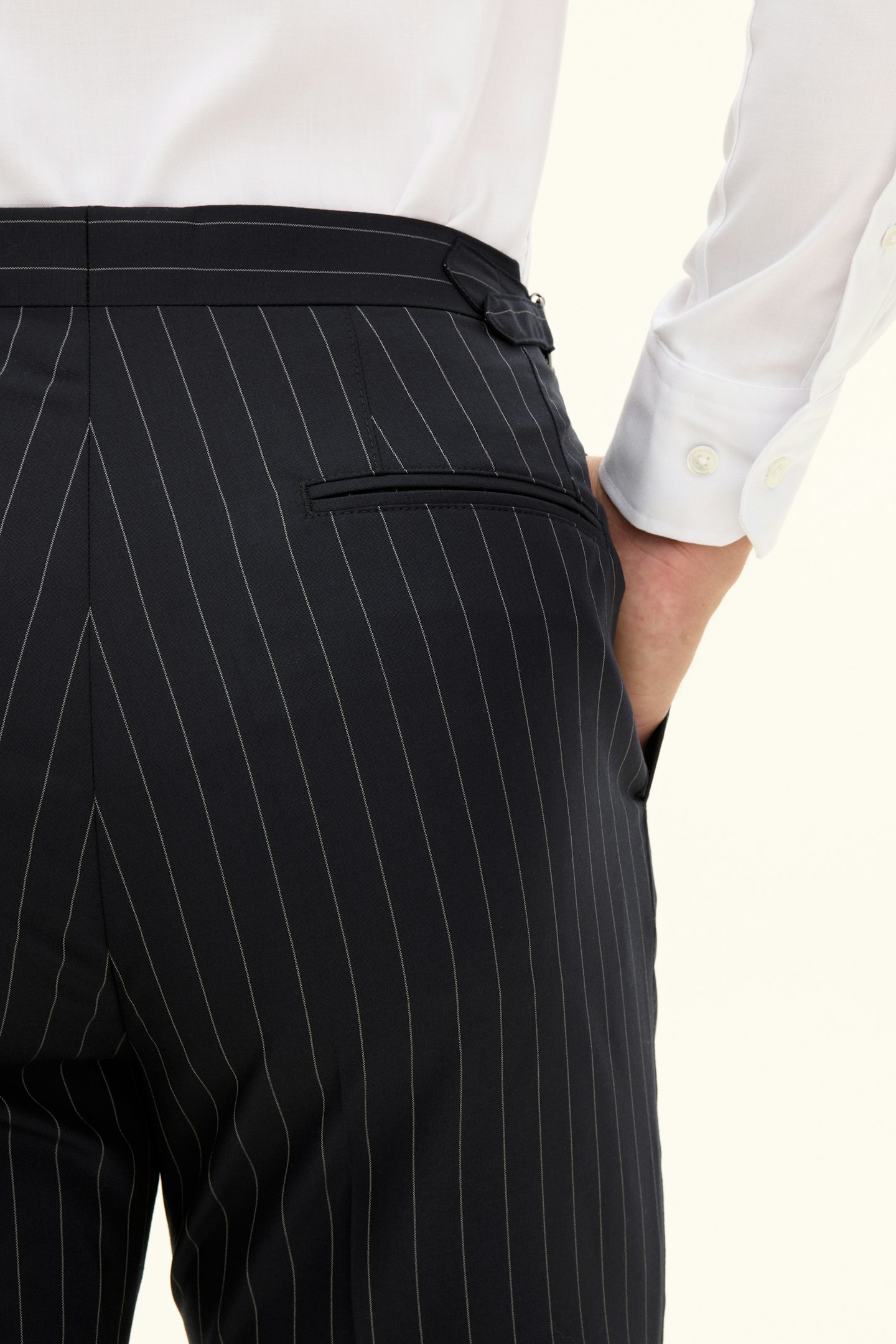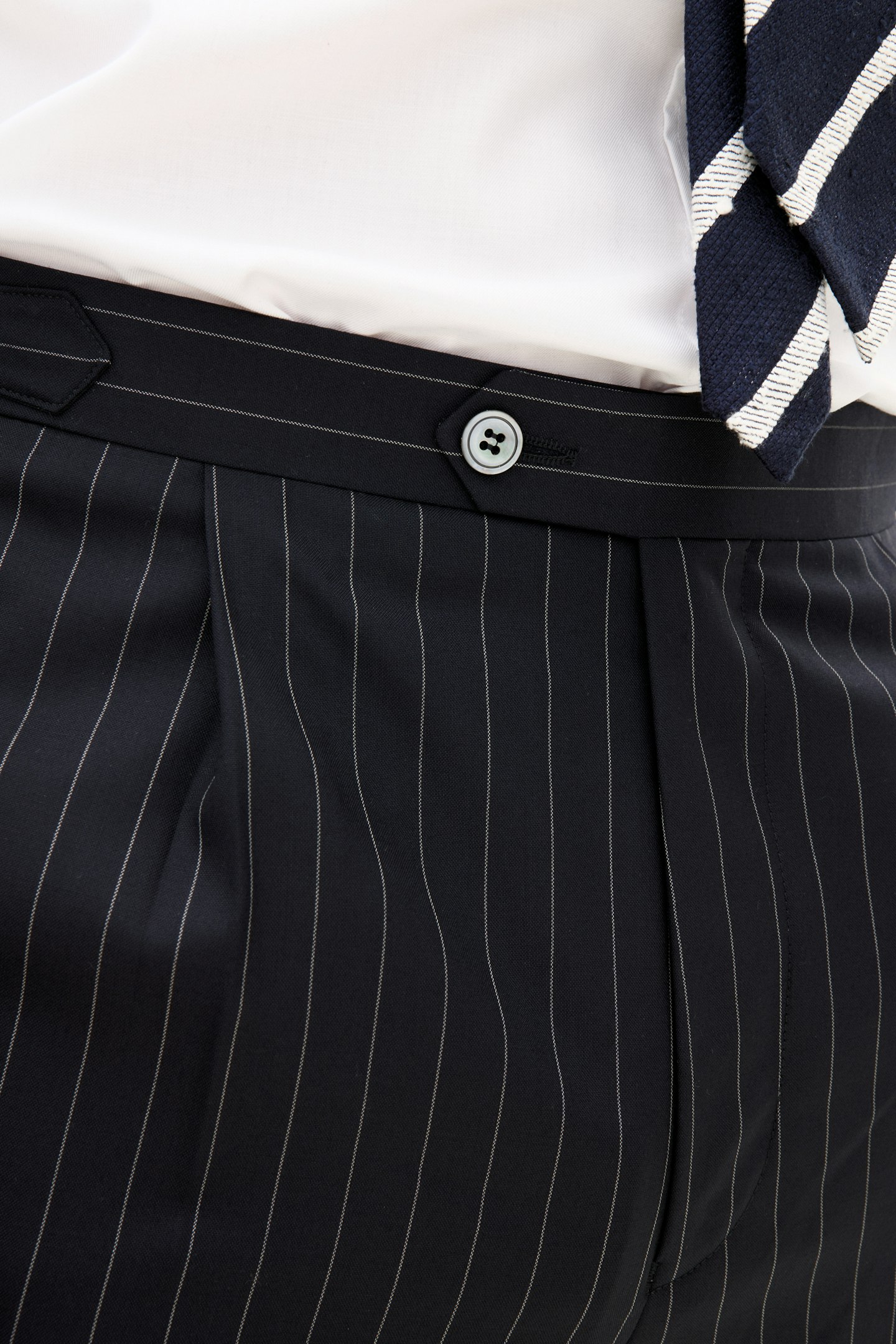 This product is made from a striped woven Super 130's wool fabric from Drago.