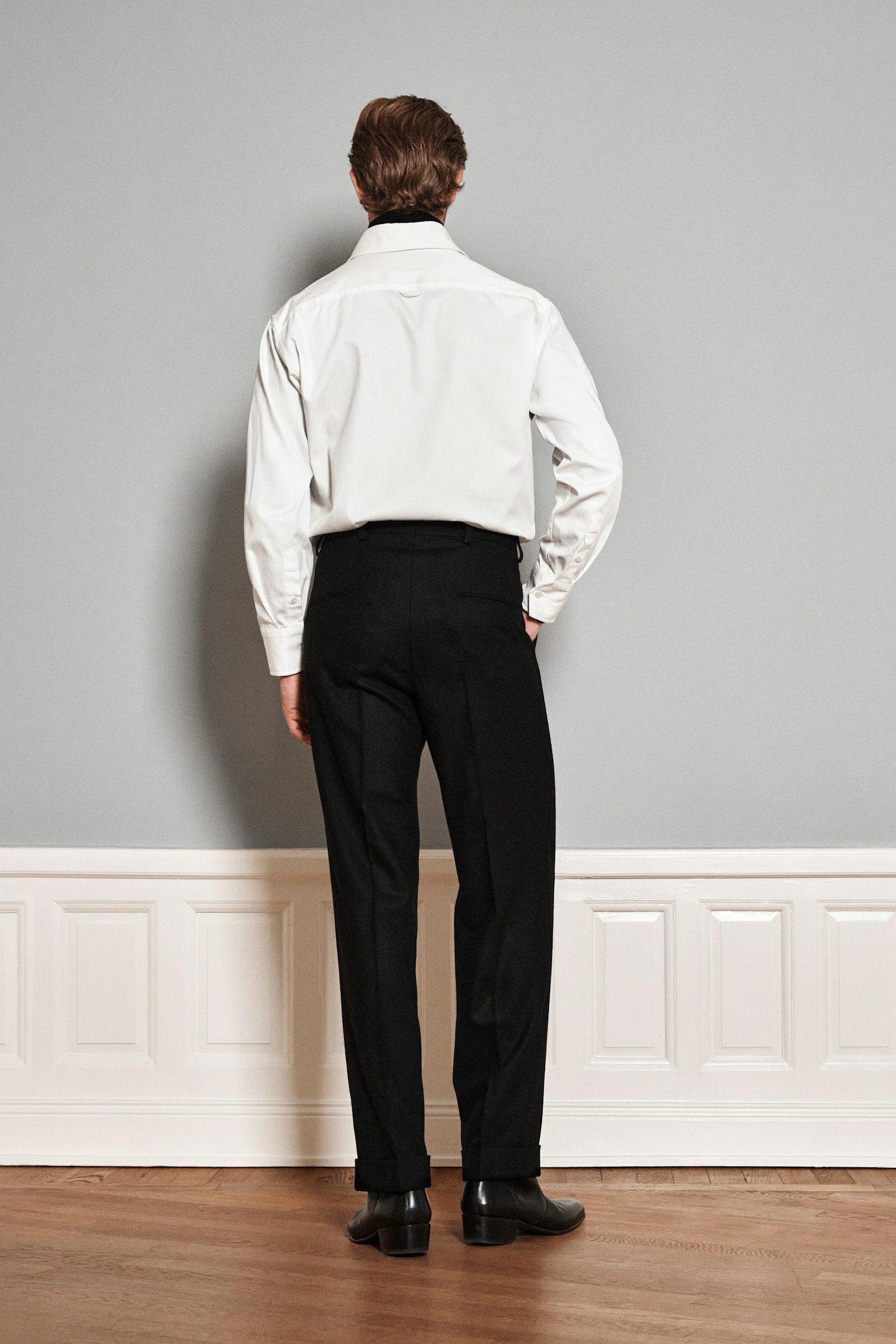 This product is part of Oscar Jacobson's Legacy collection, which is rooted in classic men's fashion and our rich history. We have been inspired by models from our extensive archive and created modern versions of older garments, combining contemporary fabrics and technical solutions with a historical look. Trousers made from heavy flannel fabric from the British weaving mill Dugdale Bros. The fit, with double front pleats, wide legs and a higher waist, is inspired by classic trouser styles from our archives, but has been redesigned with modern proportions and precise details for an updated silhouette. A garment that combines traditional patterns with modern design.