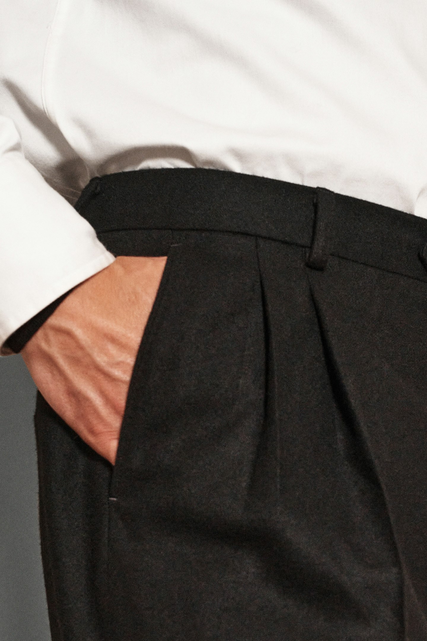 Regular Fit High Waist Pleated Flannel Trousers