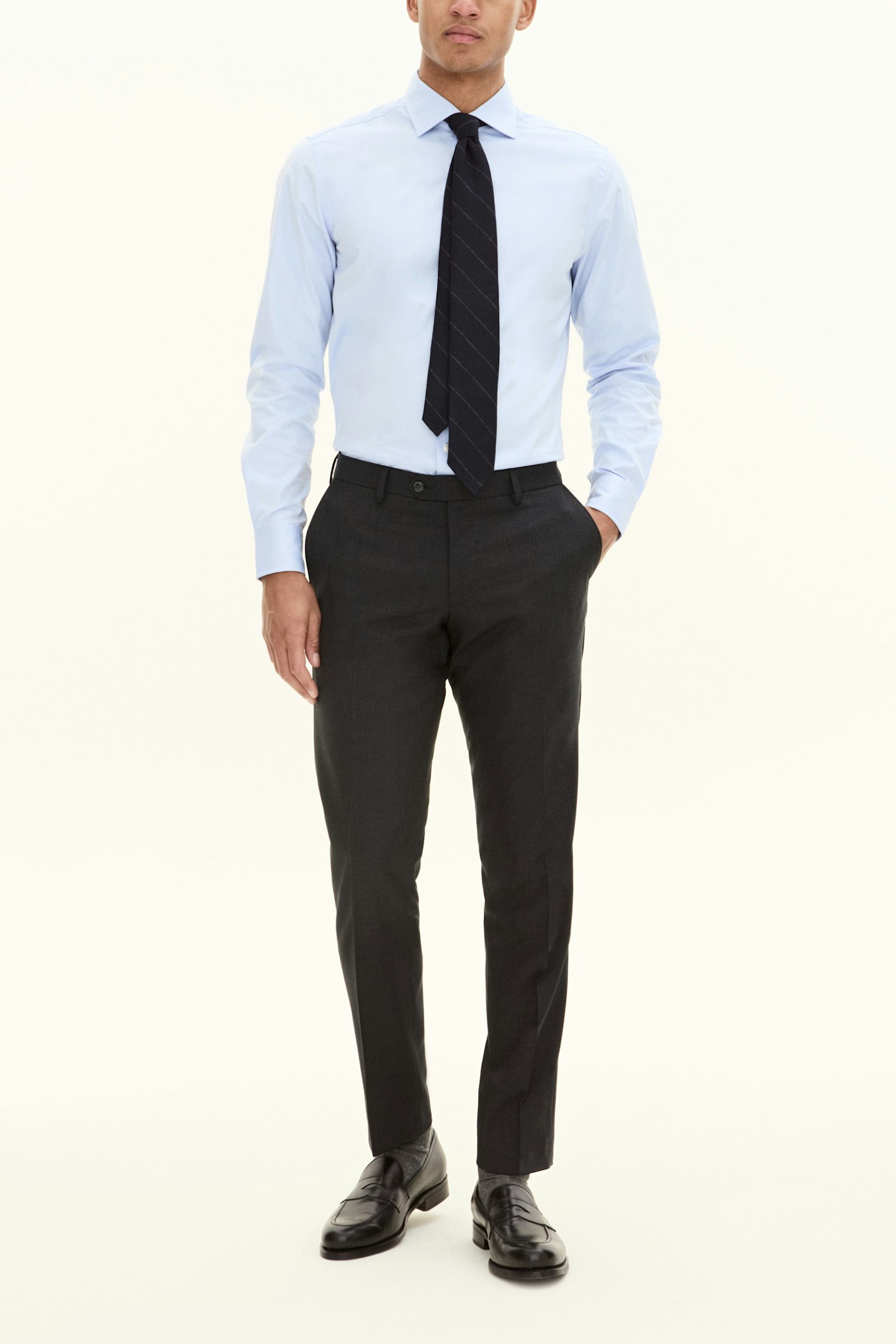 Classic suit trousers in a thin super 120´s wool from the Vitale Barberis Canonico weaver. This model has a regular fit and a classic leg length. Wear them as an elegant separate or as part of a suit! For a whole suit, add blazer: Falk The trousers have 38cm foot width in size 50