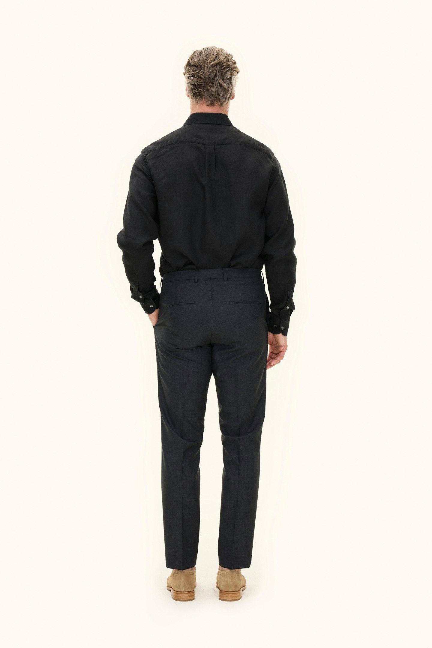 Regular fit trousers in 100% wool with an elegant microstructure. Normal waist height and the leg ends just over the shoe for a natural fall.
