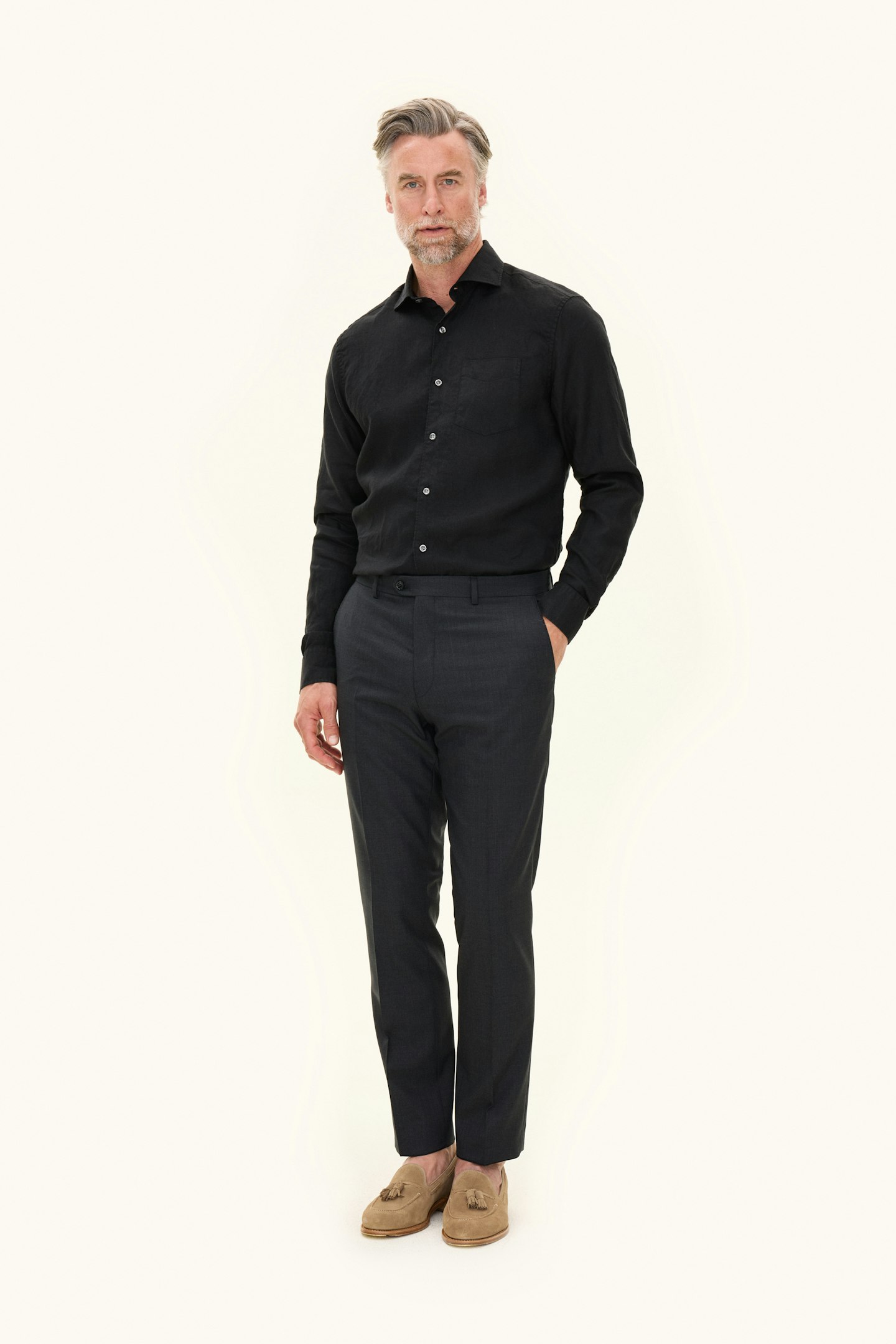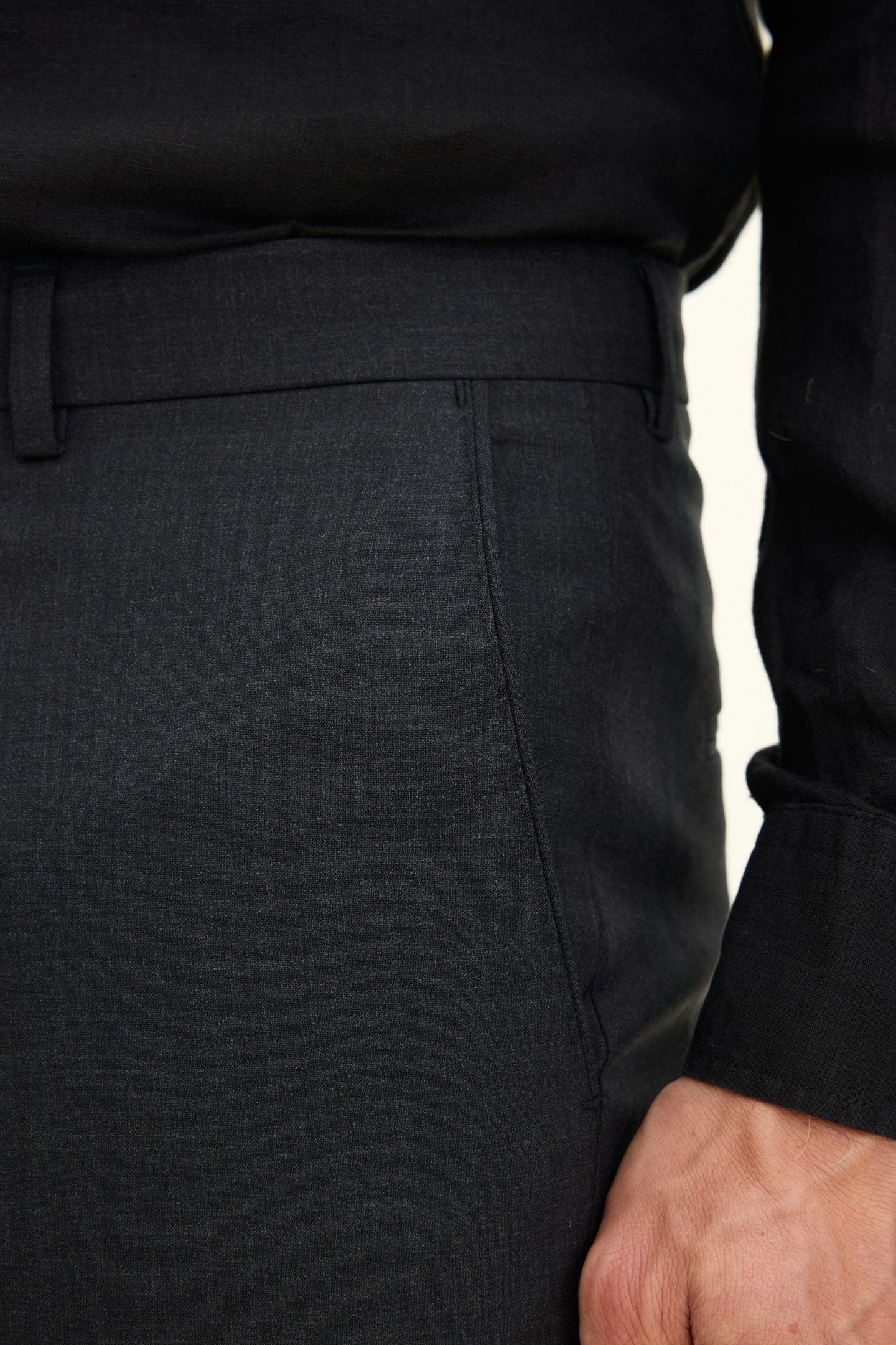 Regular fit trousers in 100% wool with an elegant microstructure. Normal waist height and the leg ends just over the shoe for a natural fall.
