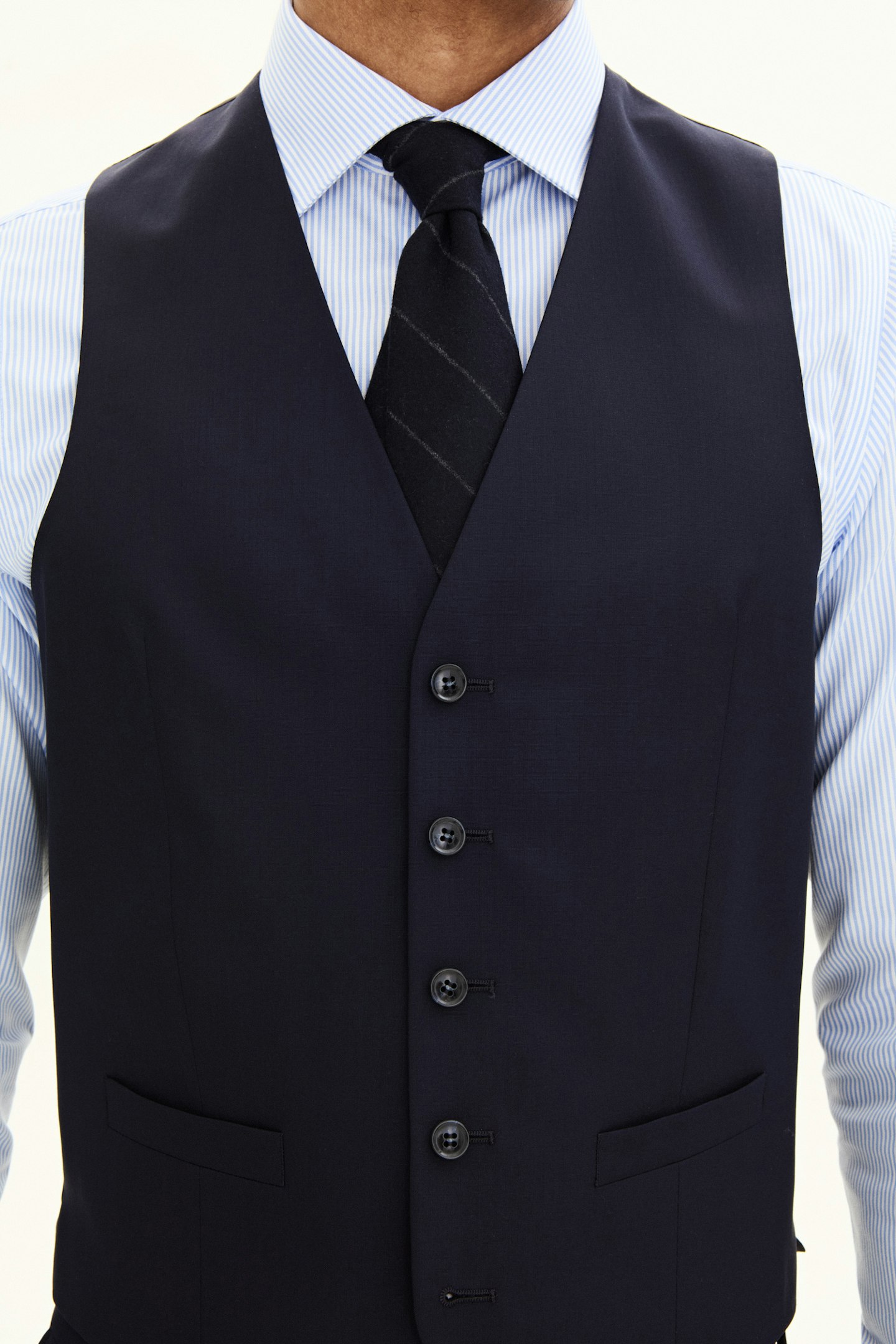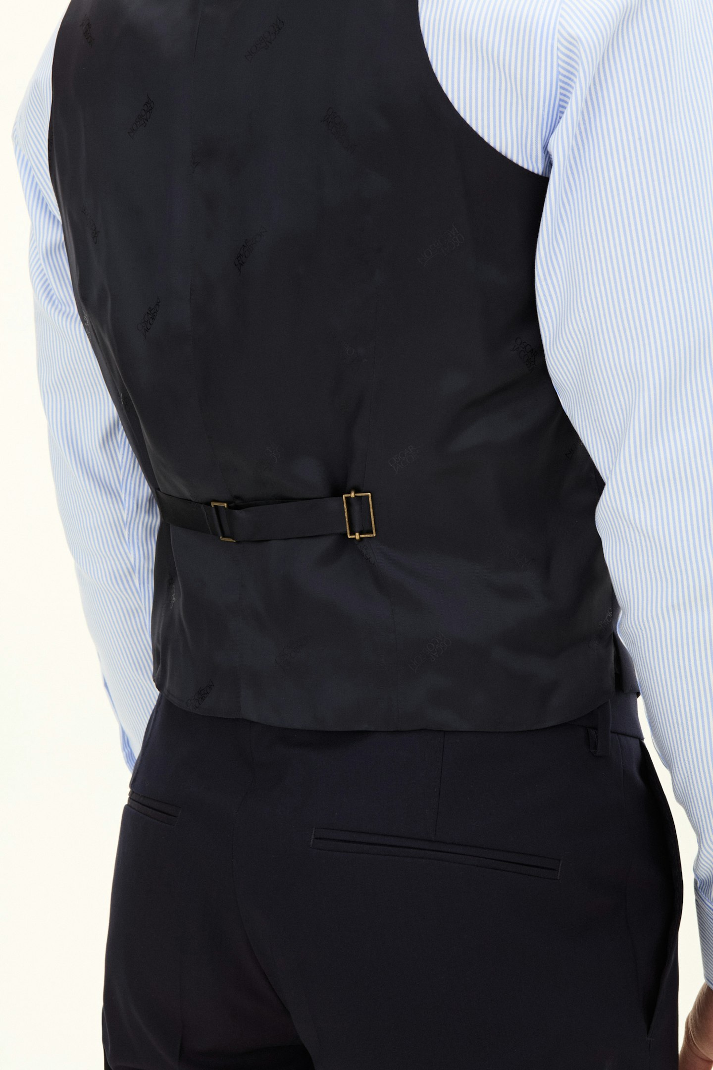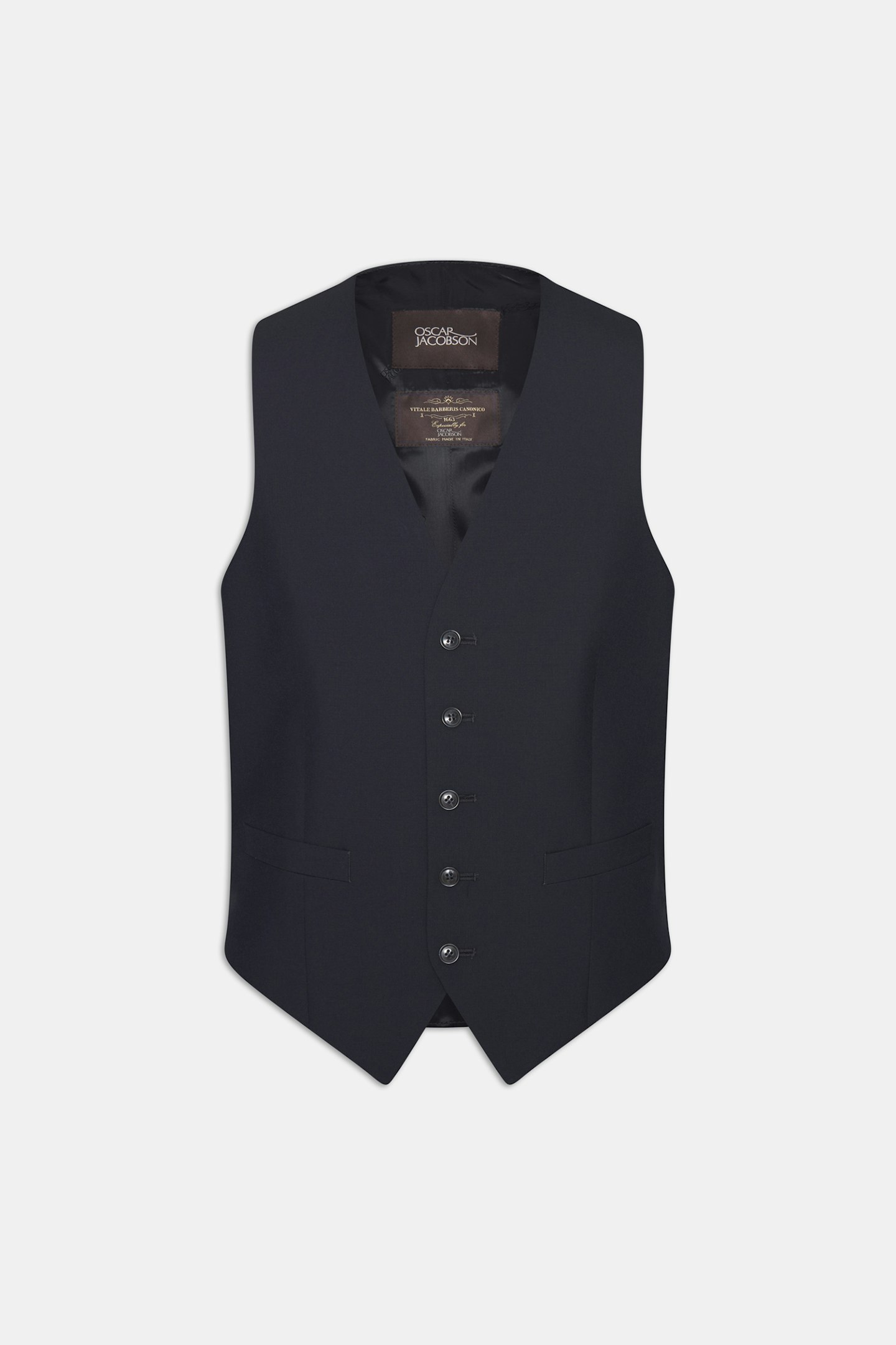 Our essential waist coat made from one of our most popular fabrics, a thin super 120´s wool from the weaver Vitale Barberis Canonico. Adjustable back in viscose.