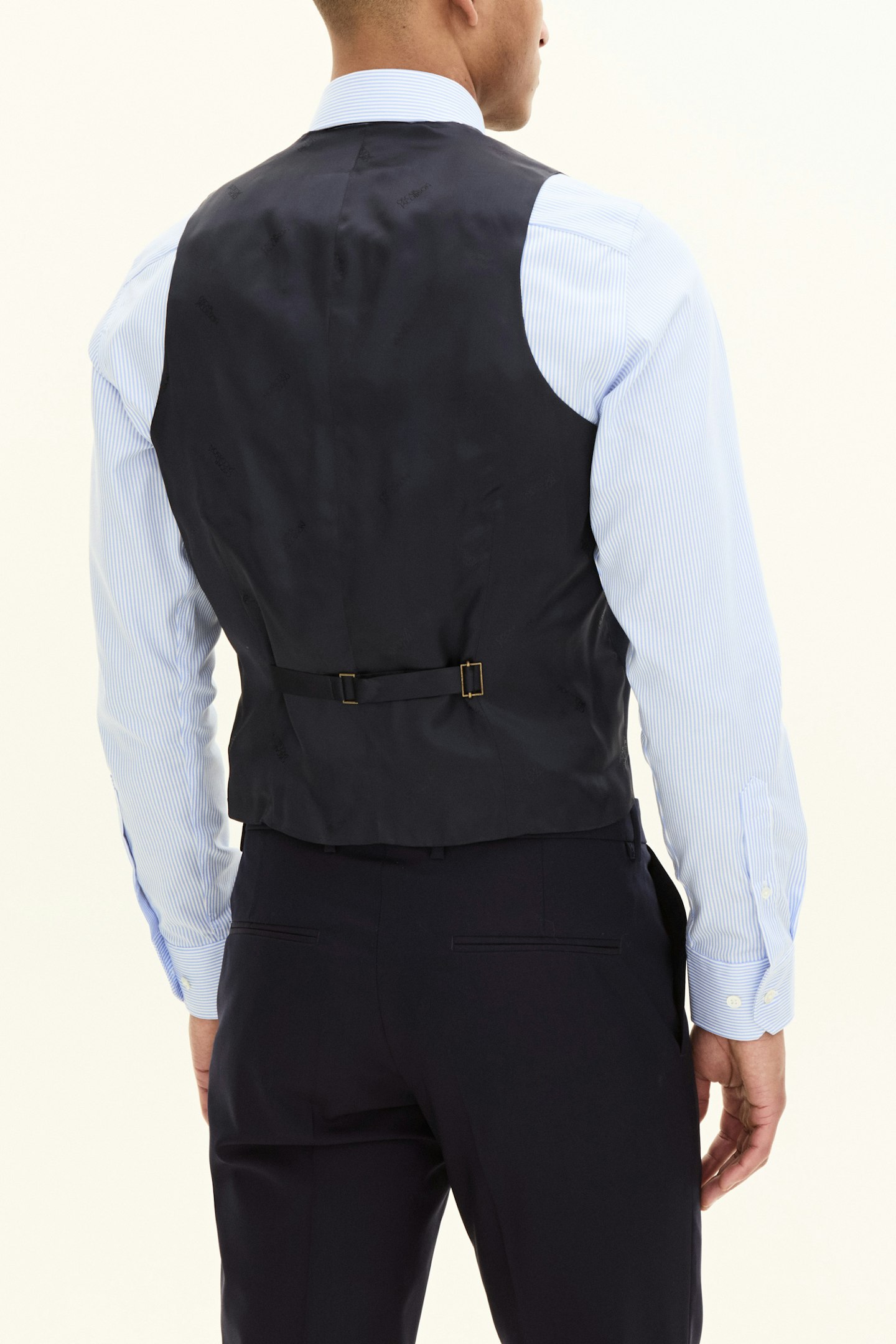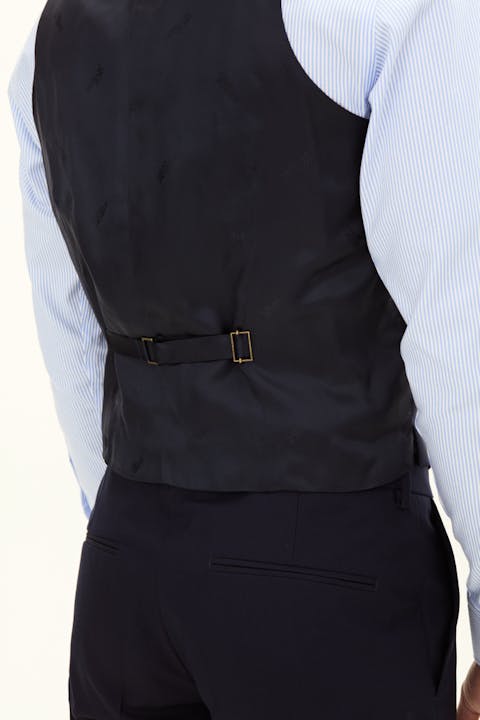 Our essential waist coat made from one of our most popular fabrics, a thin super 120´s wool from the weaver Vitale Barberis Canonico. Adjustable back in viscose.