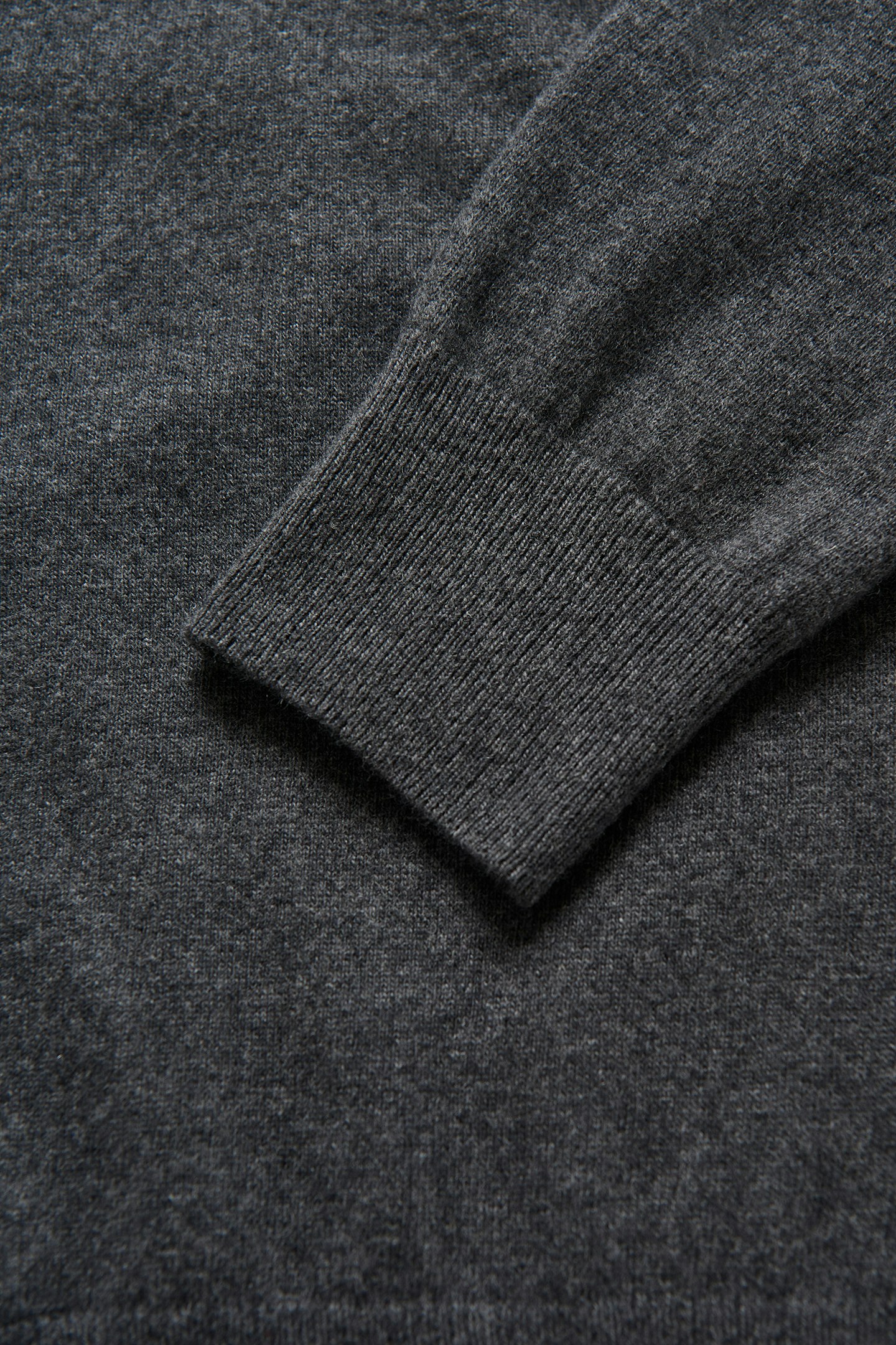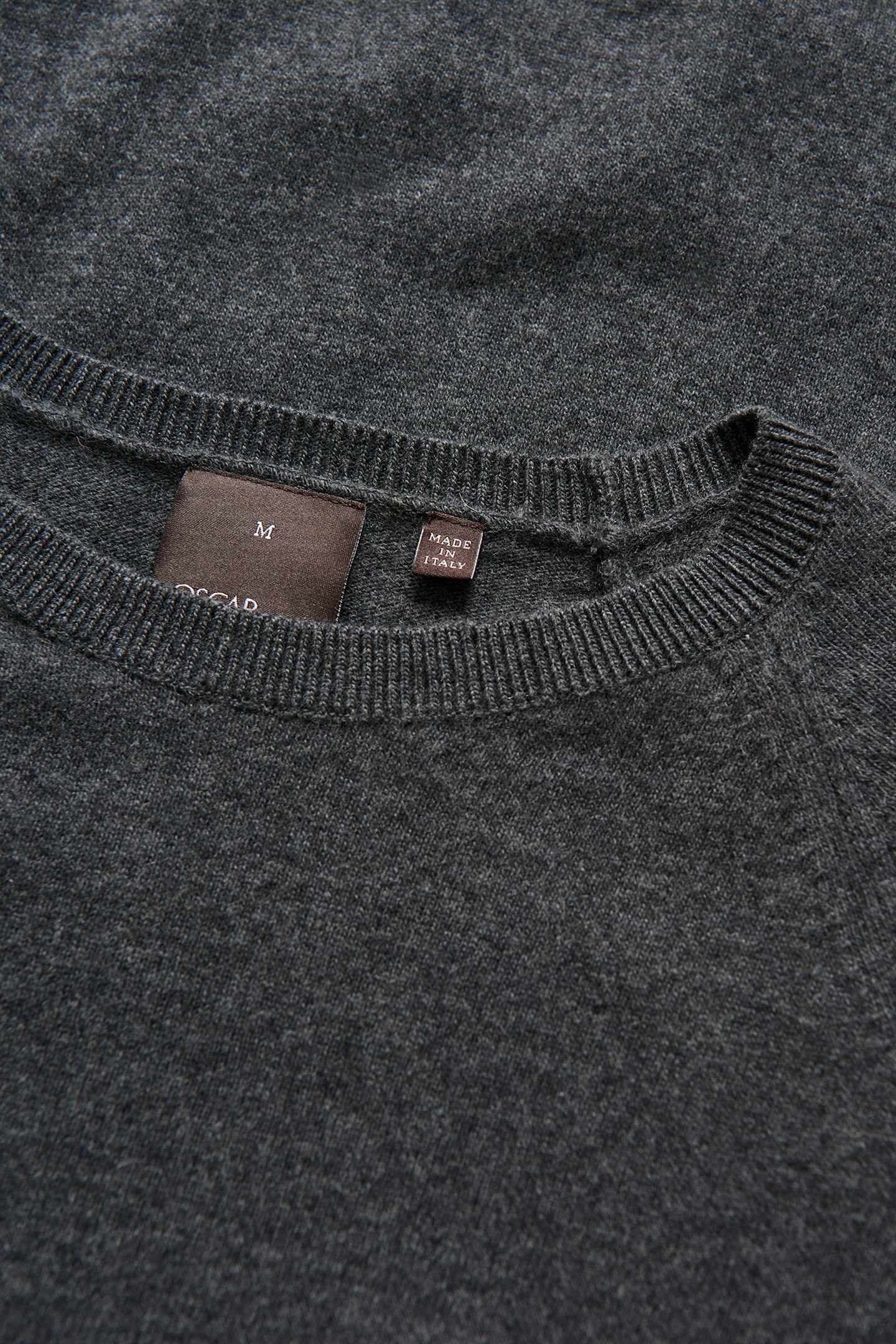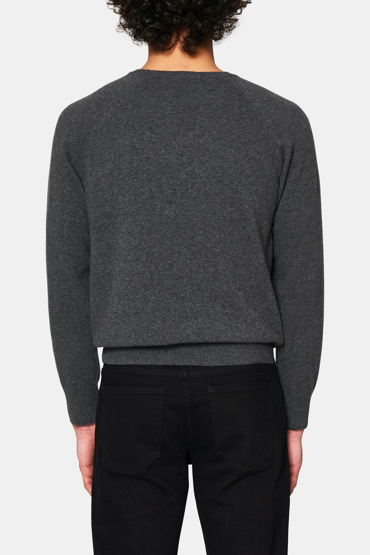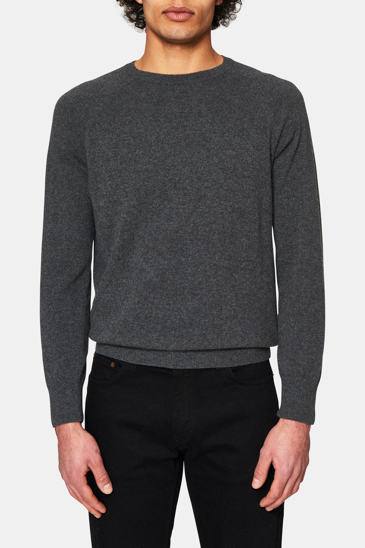 Knitted roundneck with raglan inspired shoulder, regular cut and with cuff. Made in a thin but warming wool fabric.