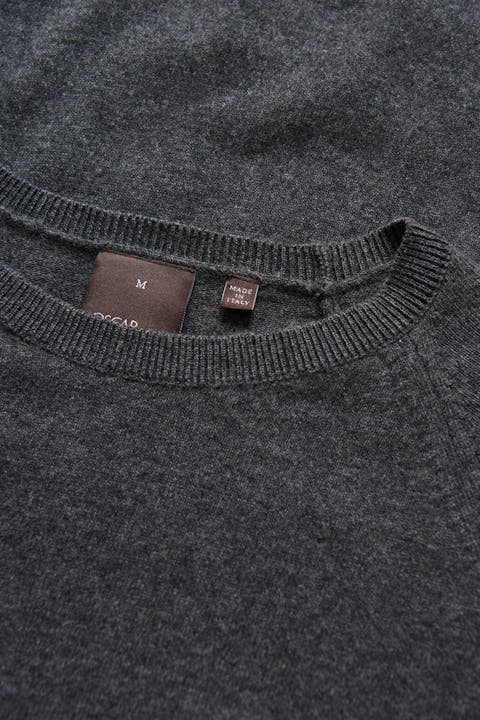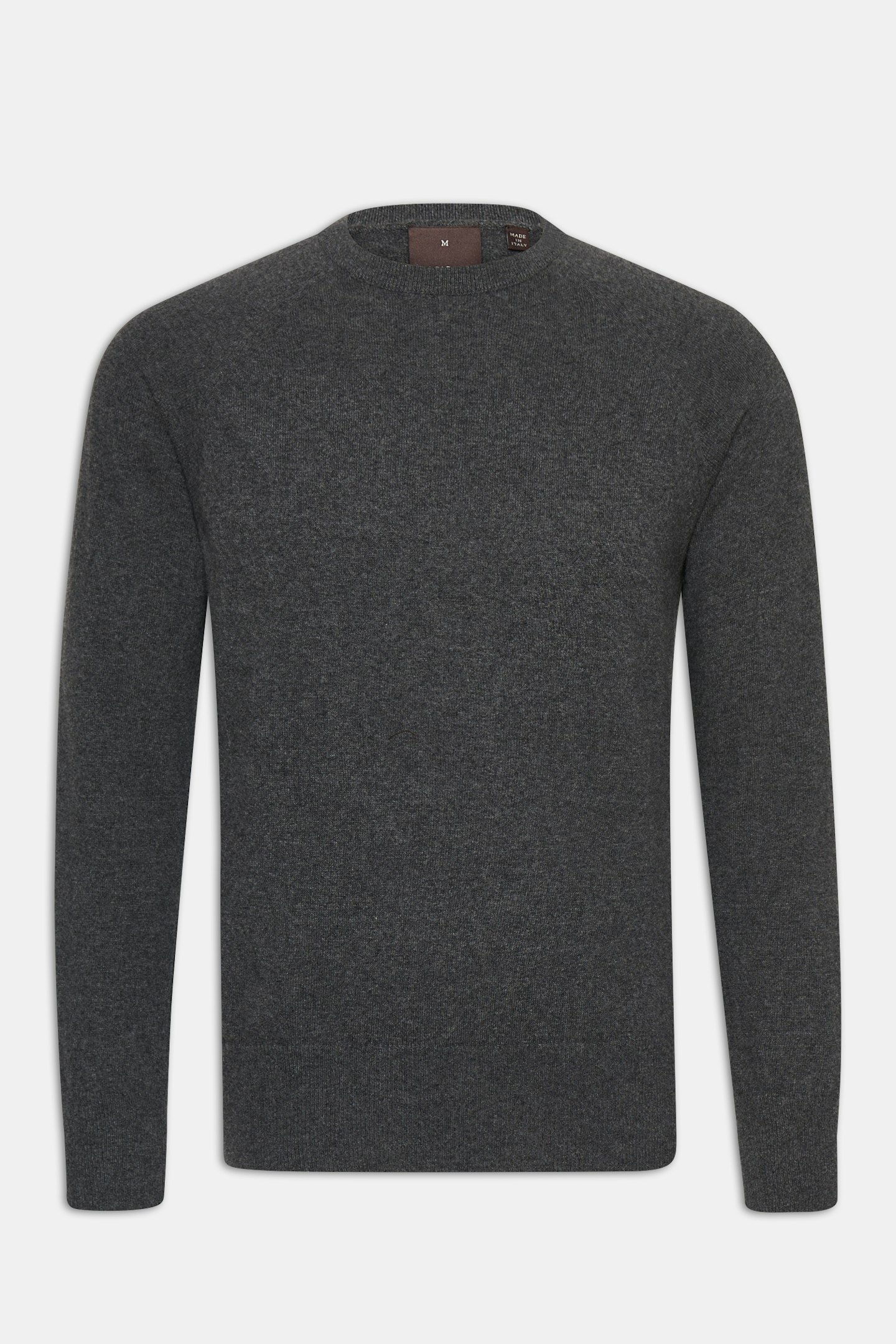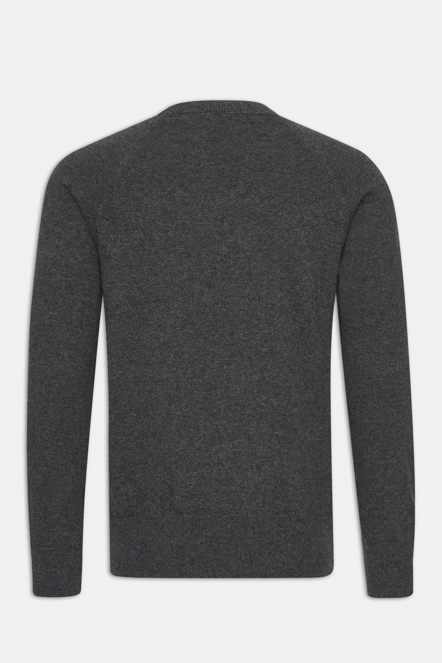 Knitted roundneck with raglan inspired shoulder, regular cut and with cuff. Made in a thin but warming wool fabric.