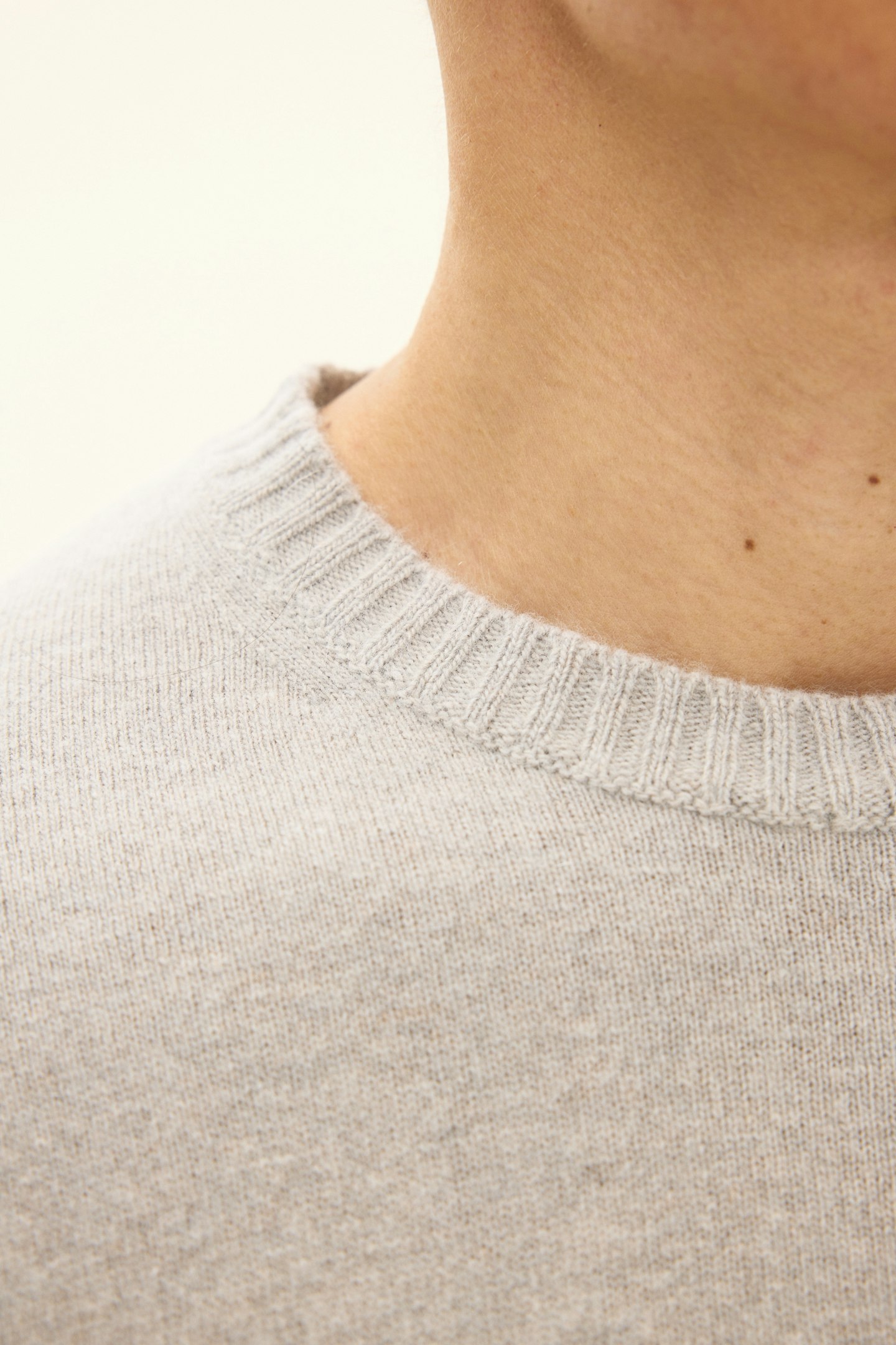 Roundneck sweater with rib knitted collar made of 12gg wool, cashmere and viscose. A true wardrobe essential base garment that can be matched with basically anything in the closet.