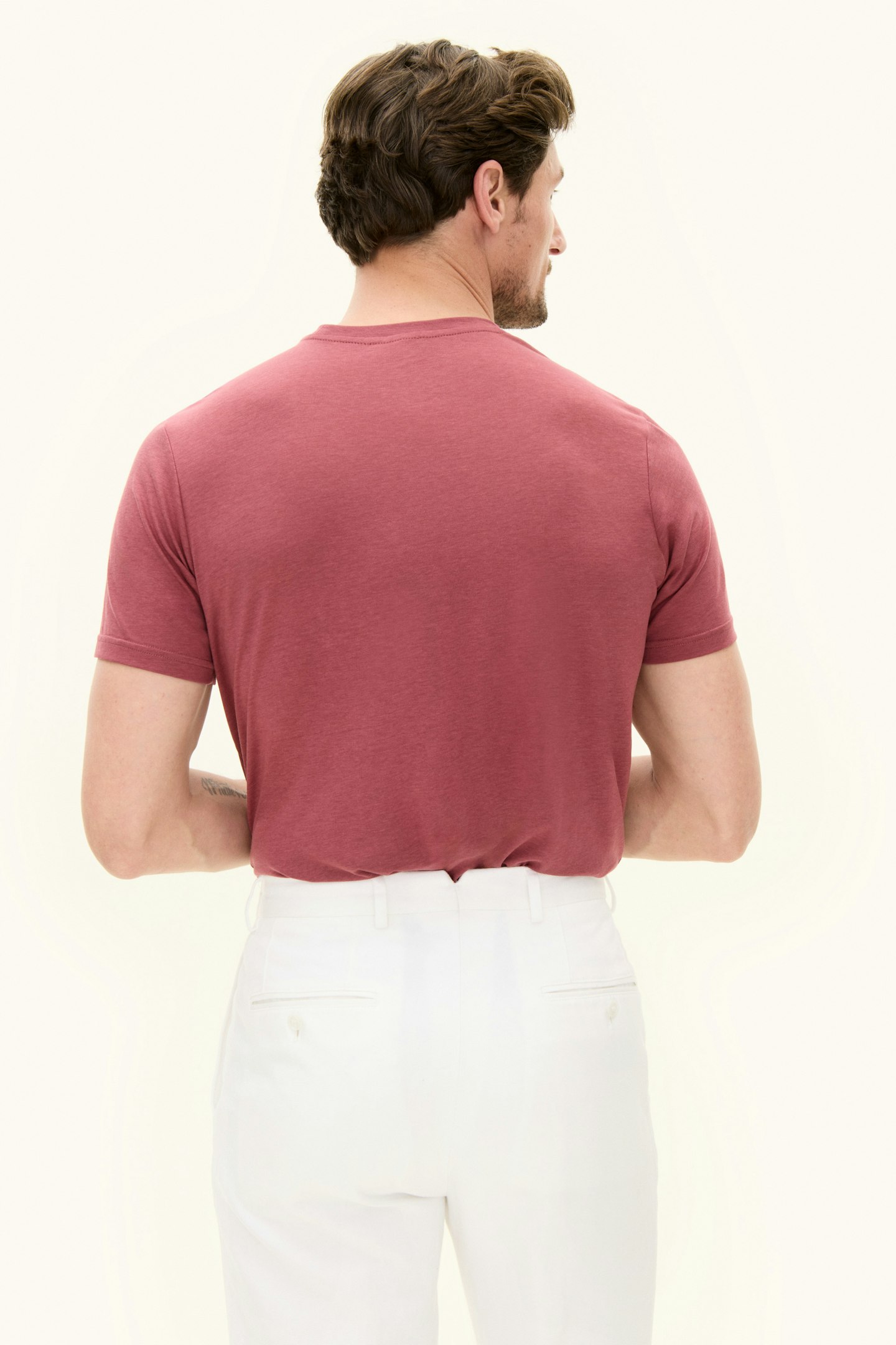 A soft and comfortable t-shirt made from cotton-tencel. Slightly sheen fabric that gives a stylish and elegant feel. Perfect to wear both under the jacket and on casual occasions.