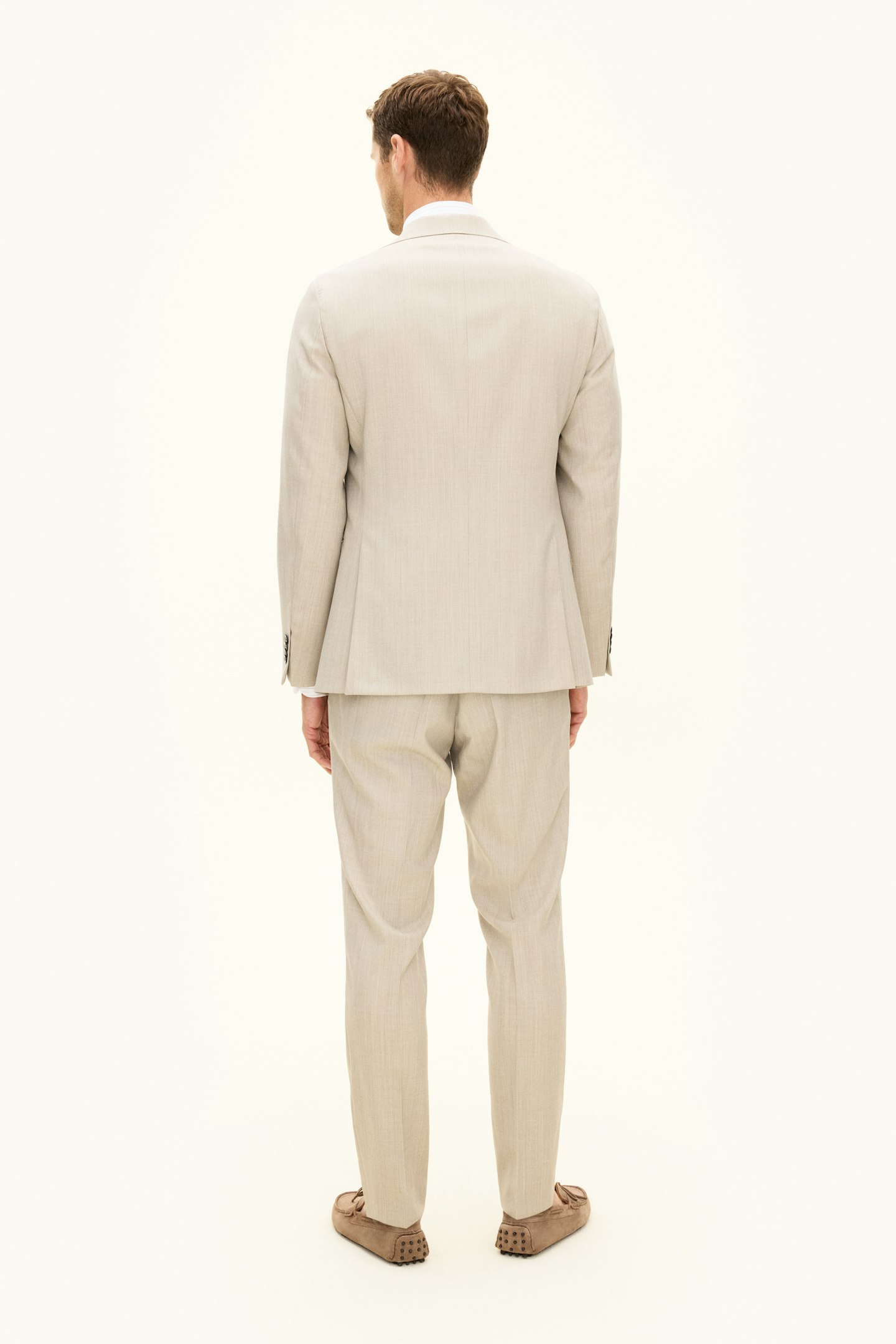 This product is made from a solid colored woven wool fabric from Marzotto.