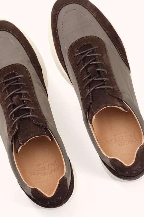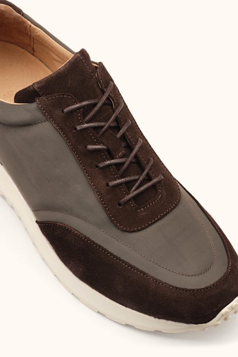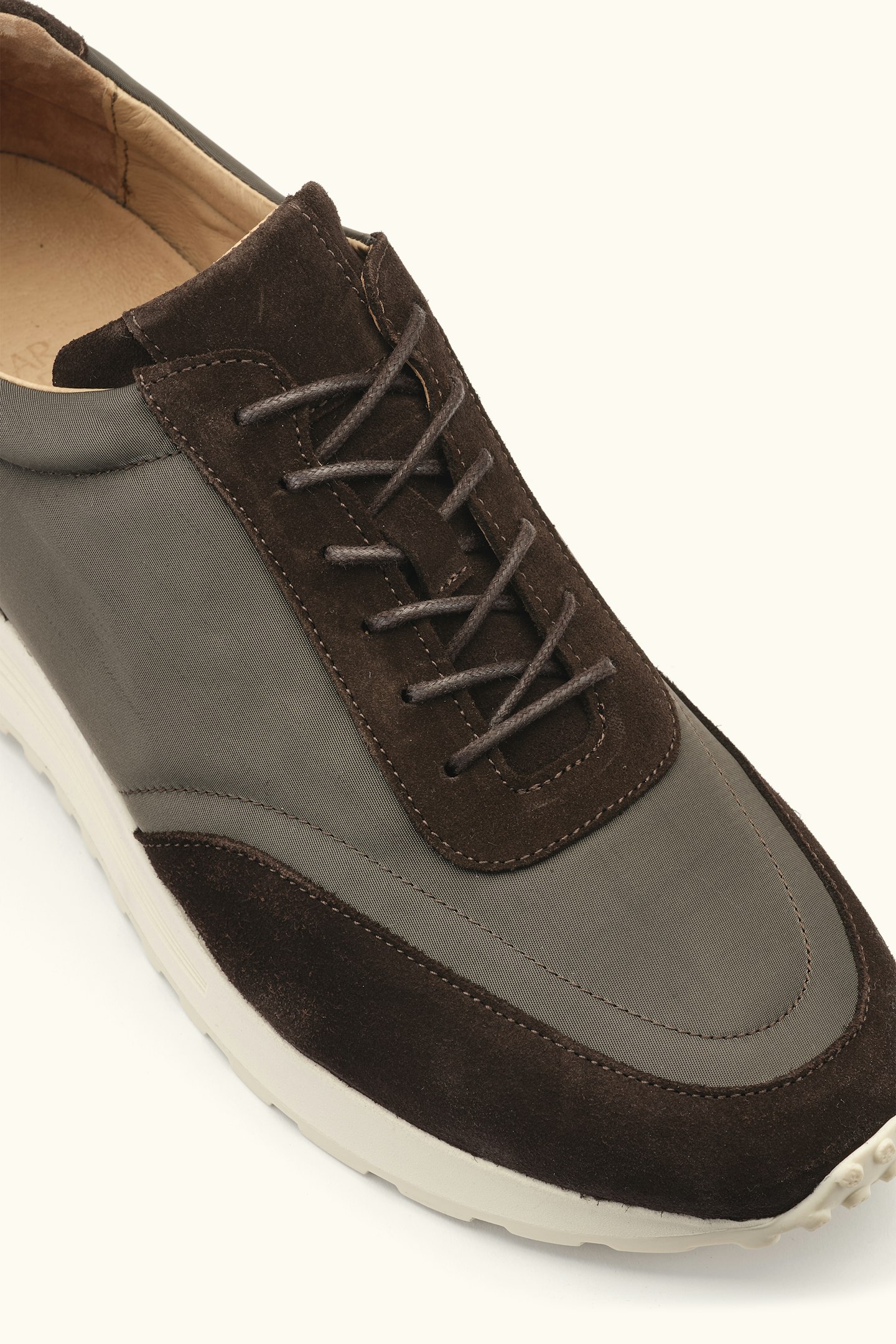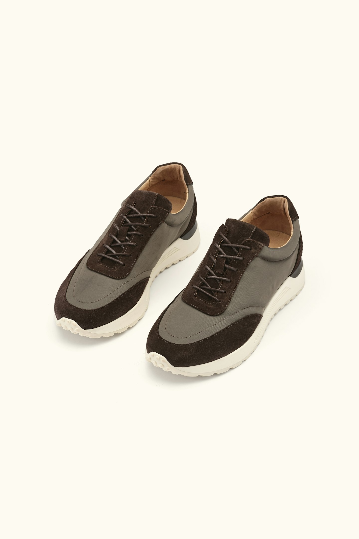 Our runner sneaker is a stylish and comfortable everyday shoe, perfect for pairing with jeans, chinos, or suit trousers. The upper is made from recycled nylon from Mipe Textiles with detailing in portuguese suede. The sole provides soft cushioning, while the outsole is made from durable rubber for long-lasting wear.