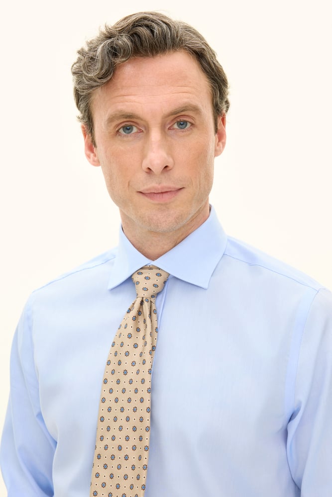 A shirt crafted in 100% cotton cut close to the body with cut away collar and single cuff. Adds elegance to any modern wardrobe.