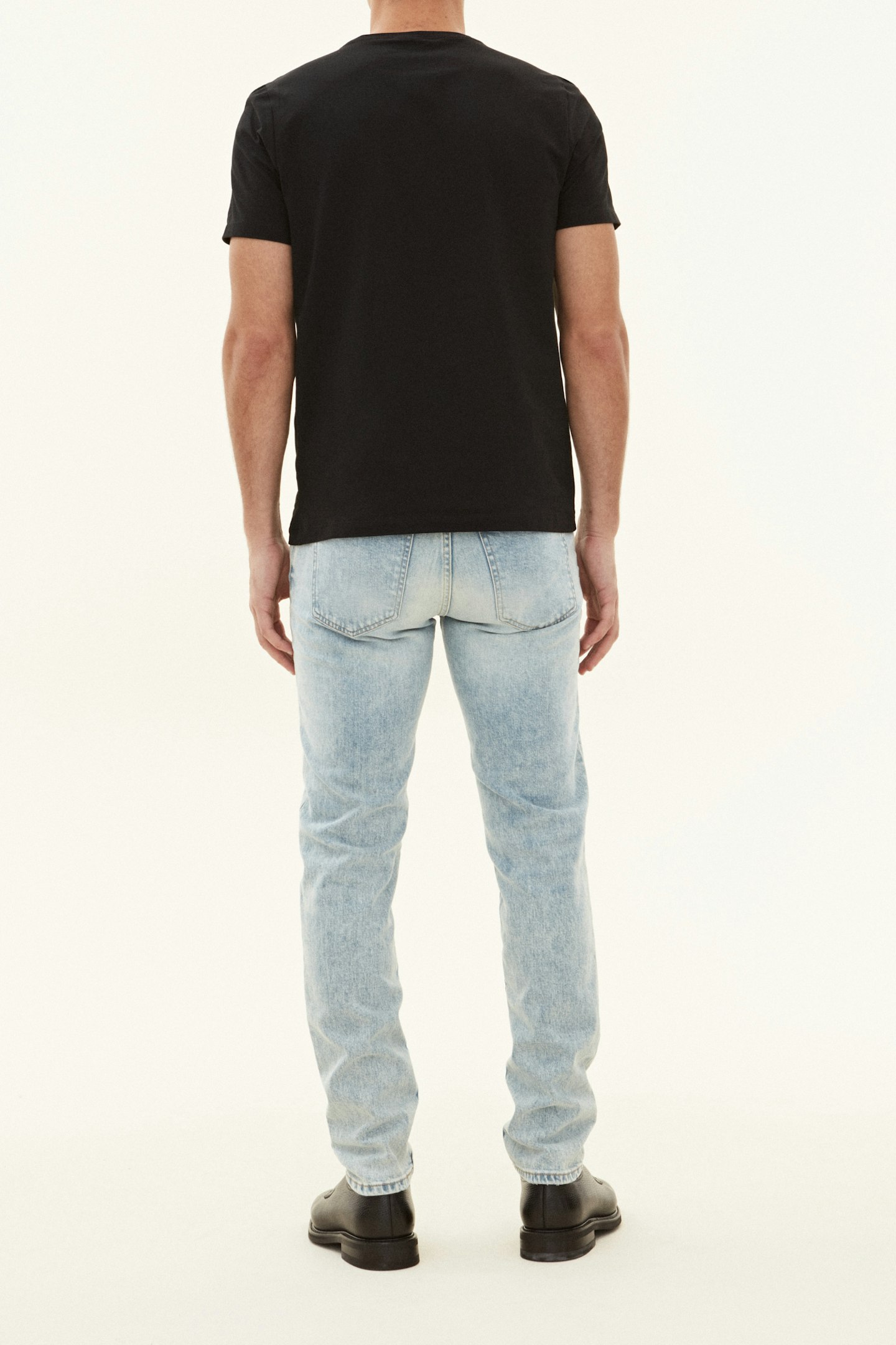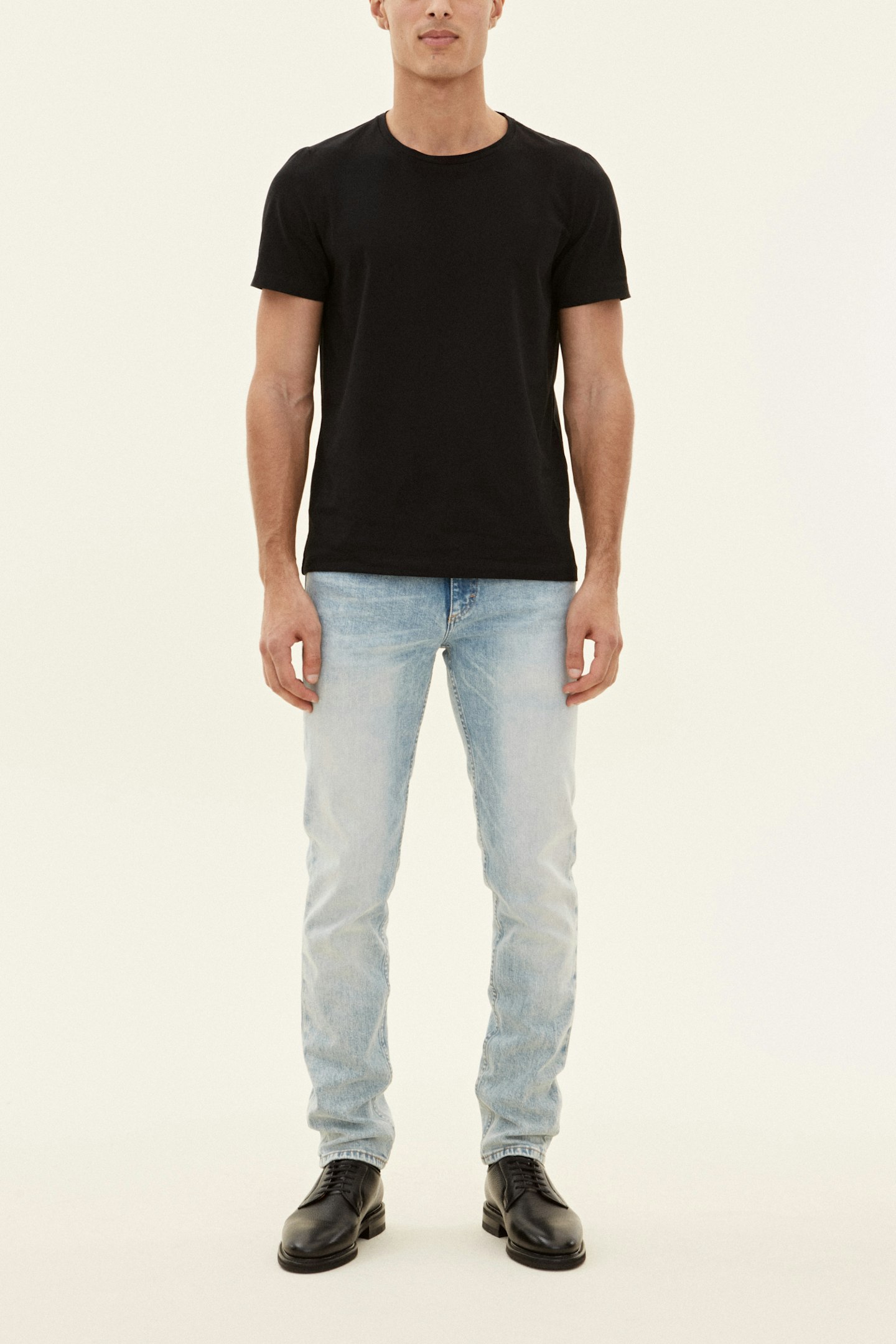Slim fit denim trouser with straight leg, the waist has a normal to low height. Made of stretch denim from Candiani in Italy, which is woven on old, used looms from Levis with buttons and rivets from Italy and Borås.