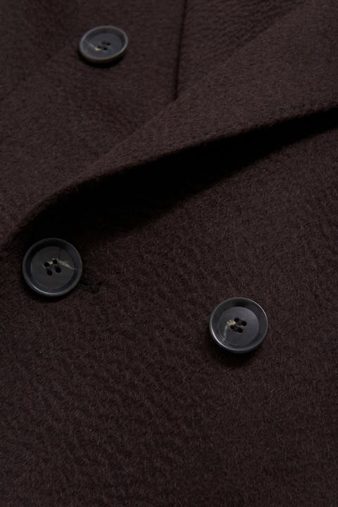 Double brested coat in a longer model, double inner pockets, full lining and wide peak lapels. Fabric in 100% camel hair which has a really soft feeling.