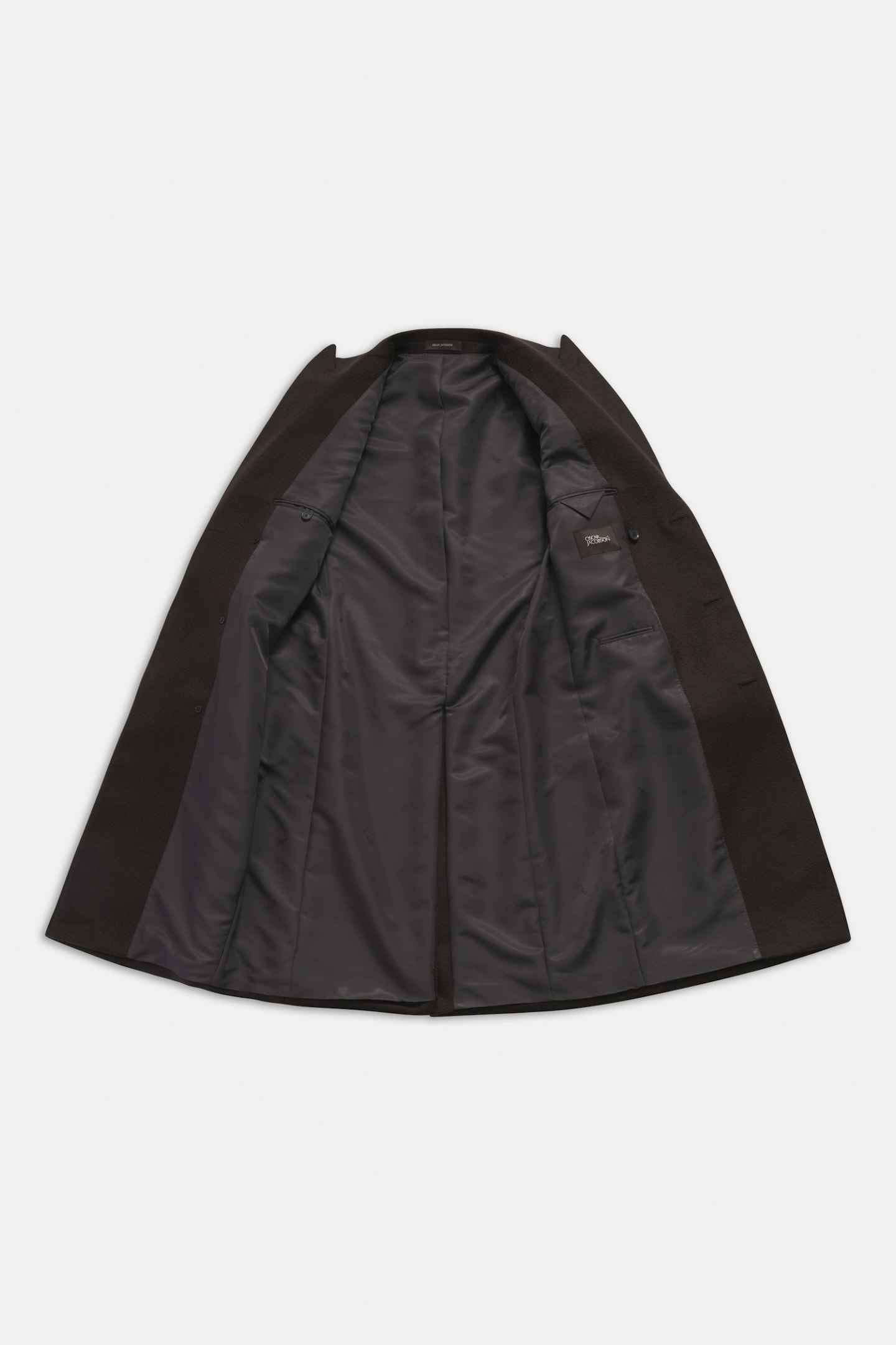 Double brested coat in a longer model, double inner pockets, full lining and wide peak lapels. Fabric in 100% camel hair which has a really soft feeling.