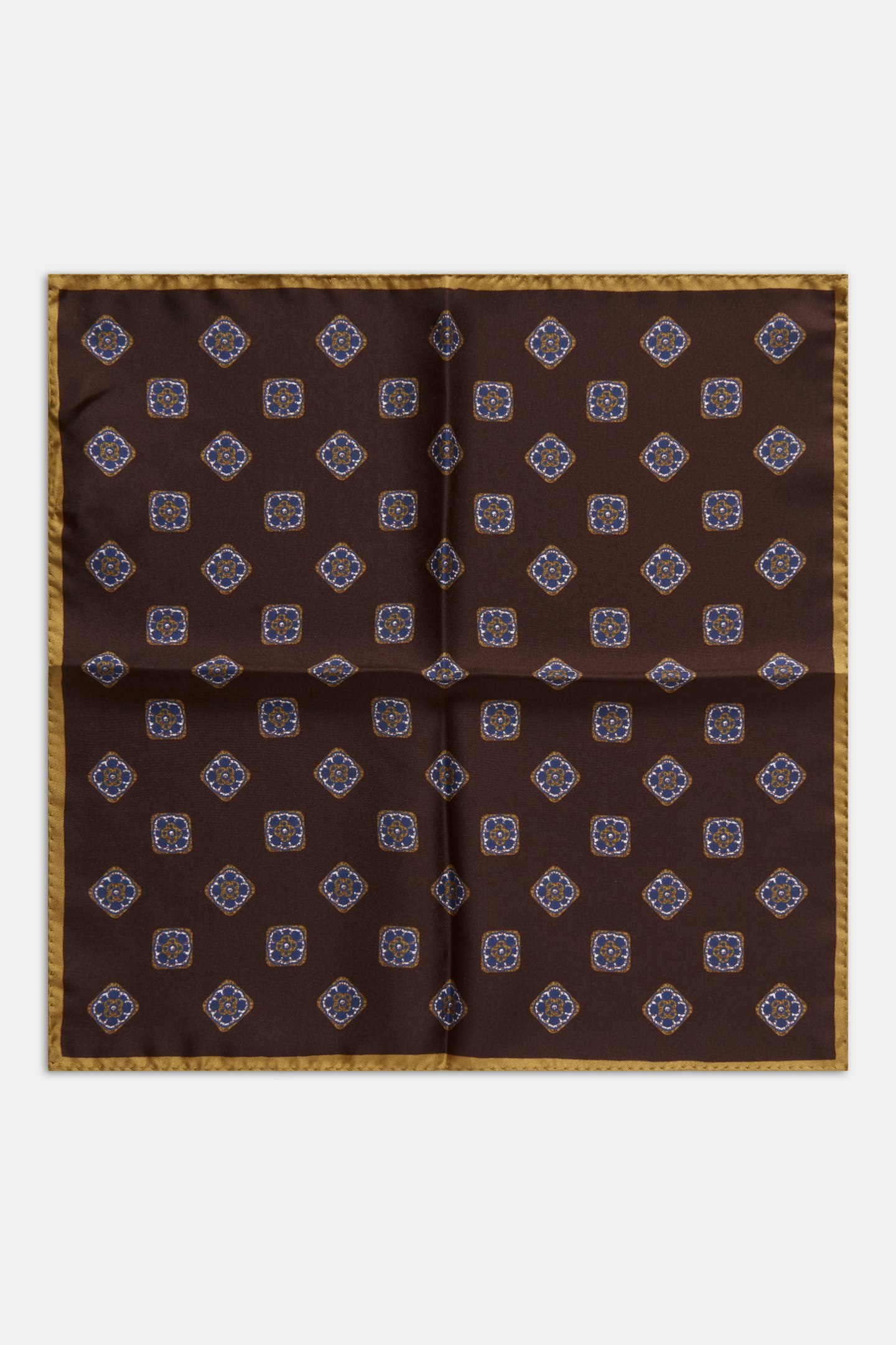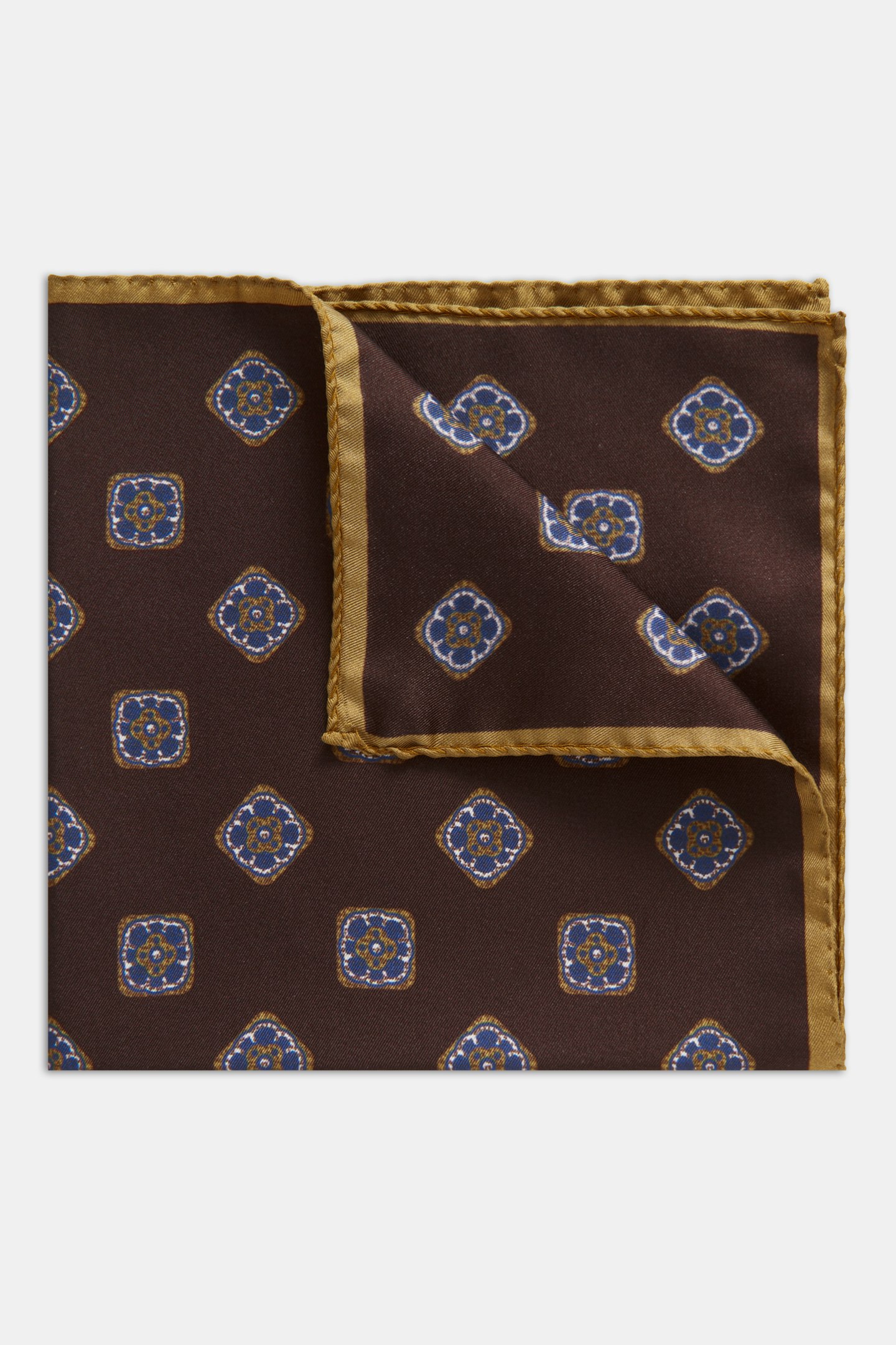 Our handkerchief is made from 100% silk and features knitted stripes. It is a stylish accessory that adds a touch of luxury to any outfit.