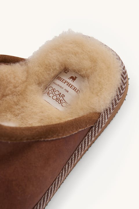 Slippers in a classic slip-in model made of genuine sheepskin. Textile edging around the sole. Outsole in EVA. In exclusive collaboration with Shepherd of Sweden.