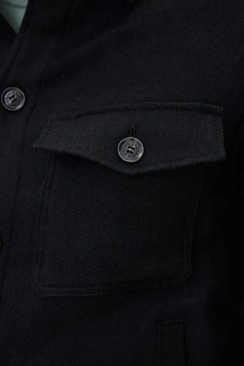 This overshirt in a wool blend is tailored to a regular fit and woven in twill with a brushed finish for a soft touch. A refined layering piece that combines casual comfort with elegance, perfect over shirts or paired with knitwear.