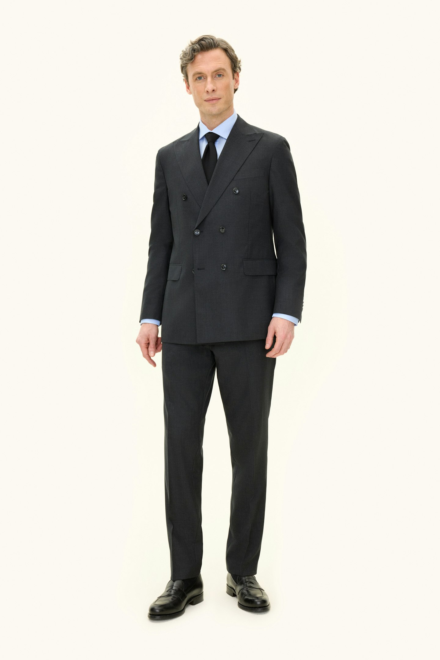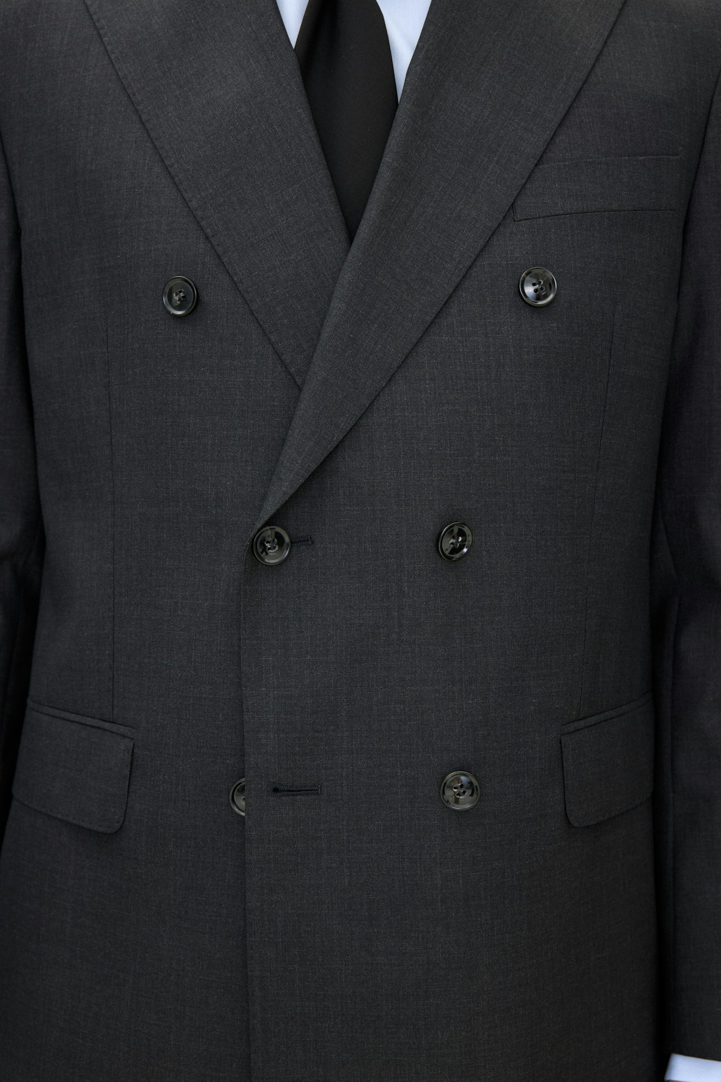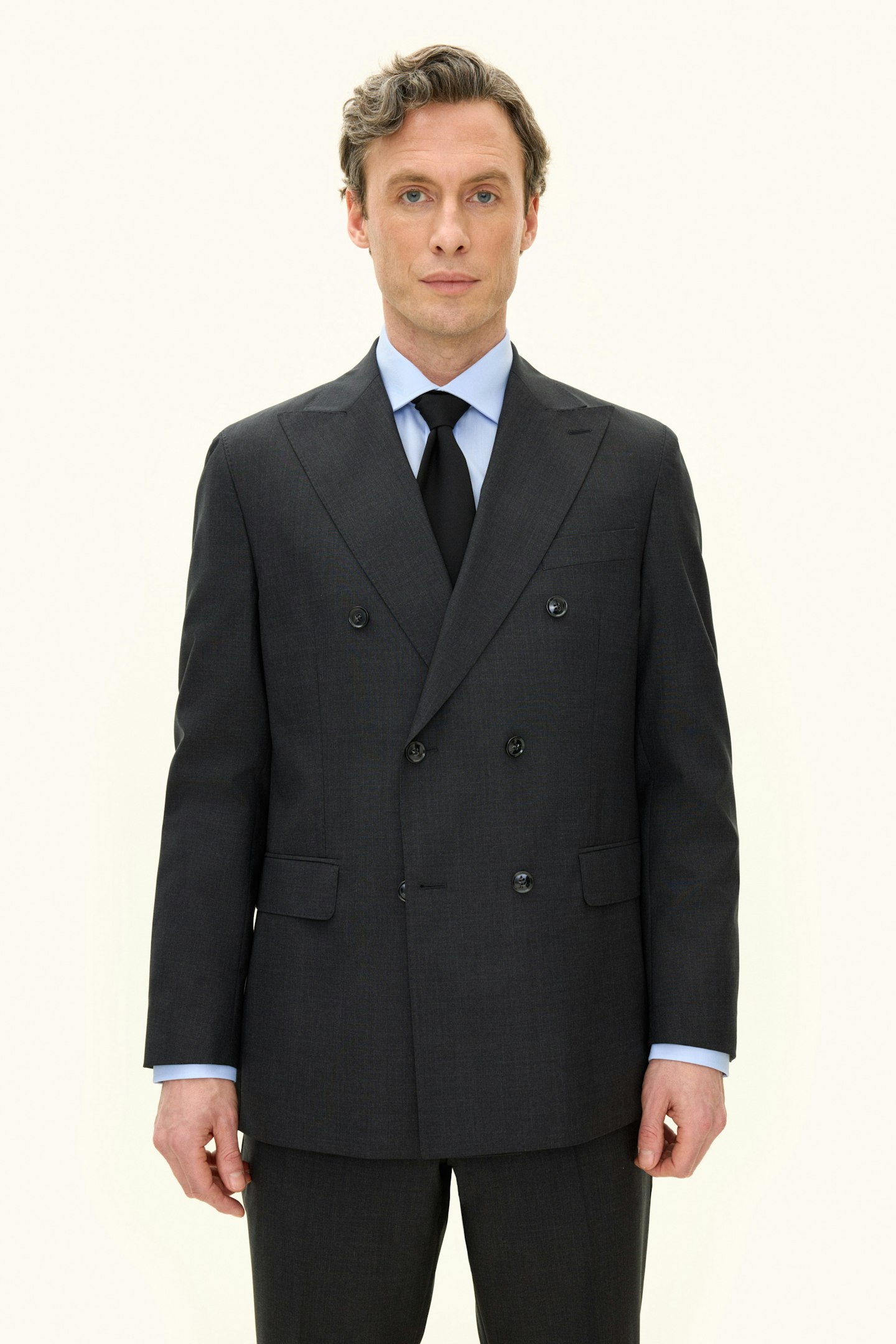 Classic double-breasted jacket in regular fit with peak lapels and softly constructed shoulder. Made of Super 120'S wool.
