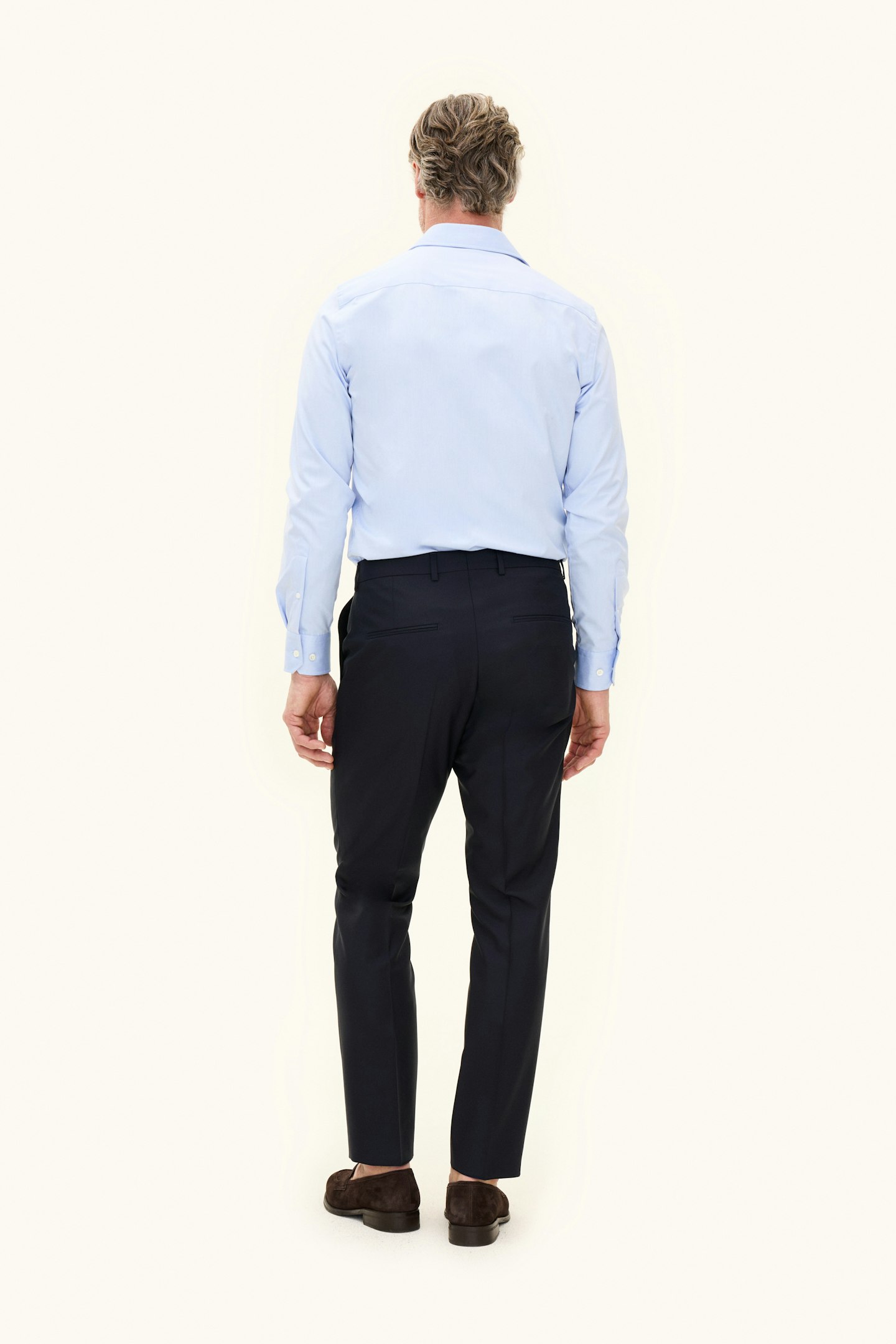 Regular fit trousers in 100% wool with an elegant microstructure. Normal waist height and the leg ends just over the shoe for a natural fall.