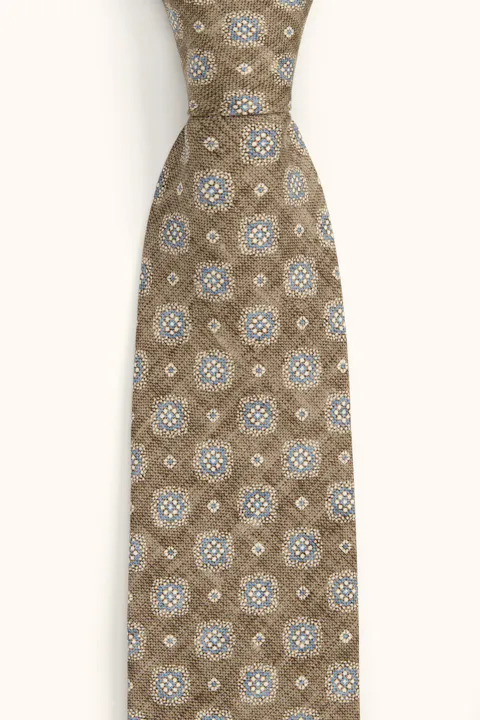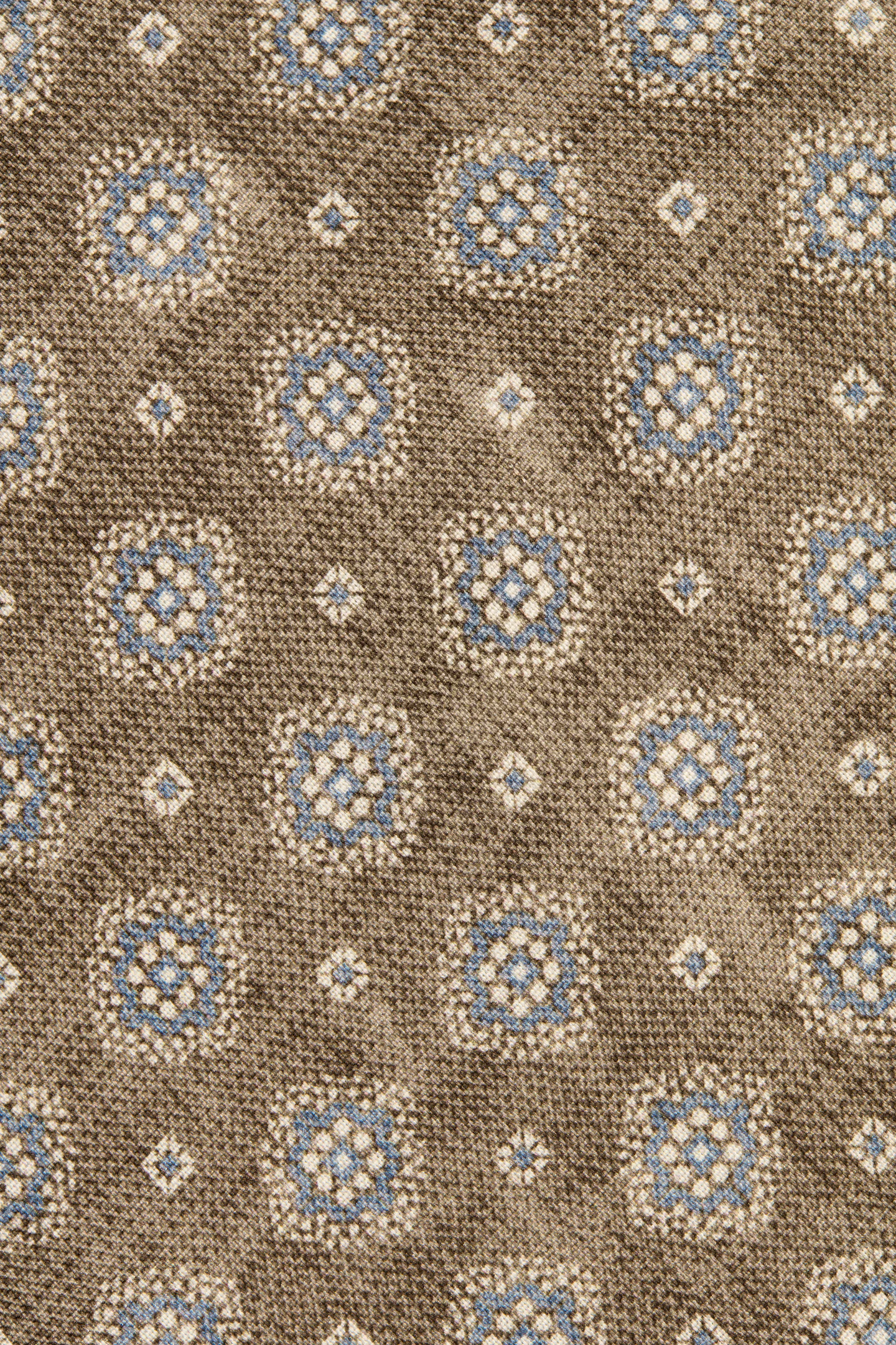 Et vevd slips i 100 % ull med et detaljert blomstermotiv. Silkenes naturlige glans gir det et elegant utseende, perfekt for å tilføre både skjorter og jakker en subtil karakter.