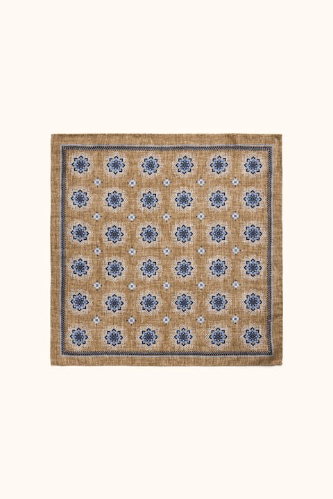 Et lommetørkle i 100 % silke med blomstertrykk. Den vevde overflaten og silkens naturlige glans skaper en eksklusiv accessoir som tilfører et subtilt fargeinnslag til antrekket. Perfekt for å fremheve både klassiske og moderne dressstiler.
