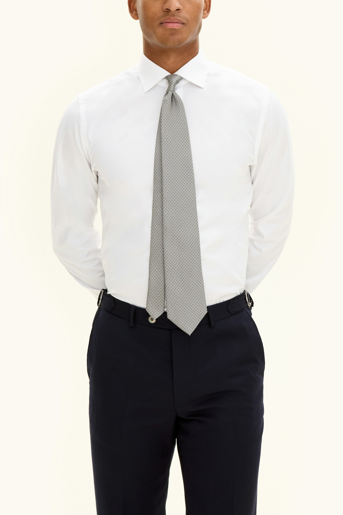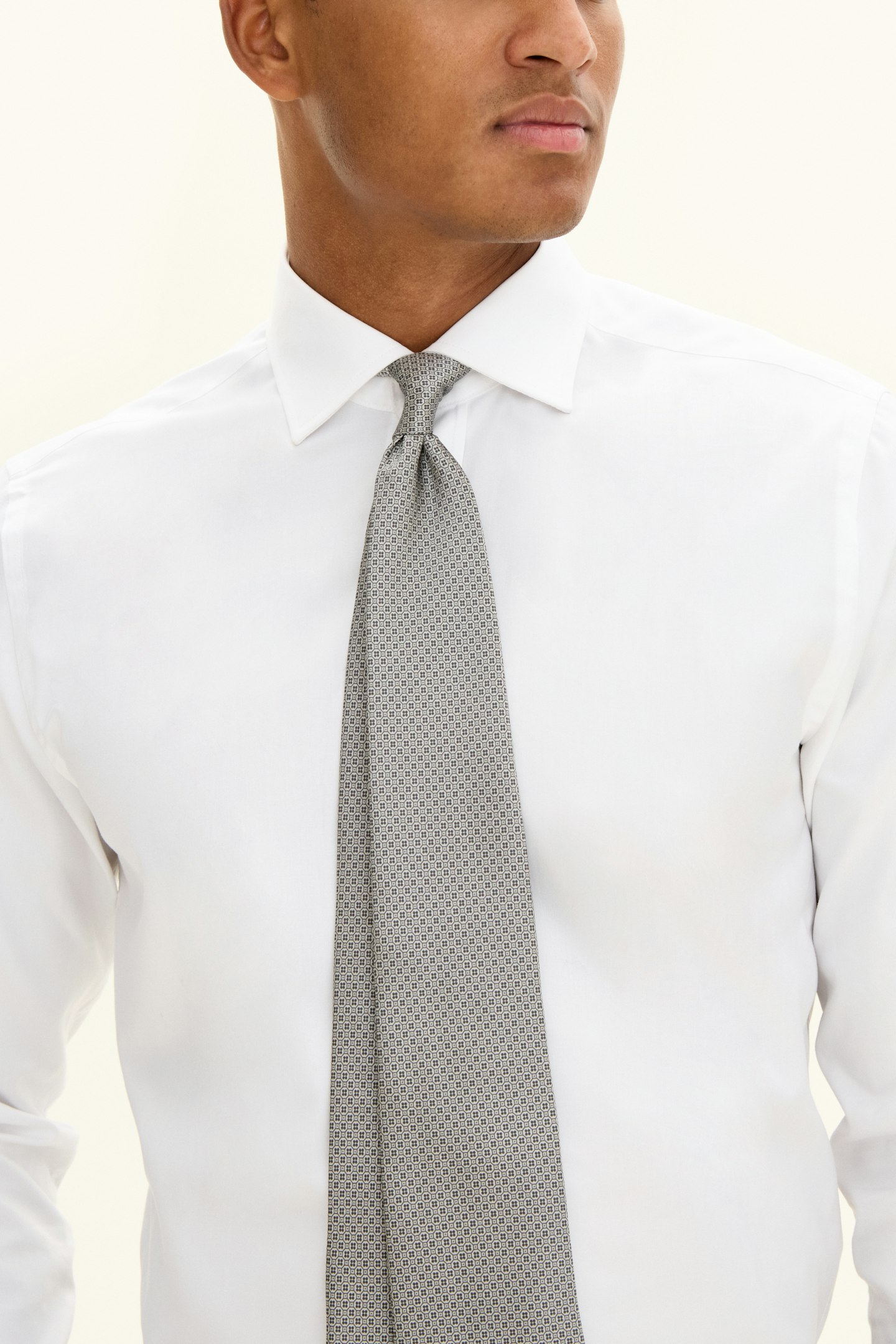 Slips laget av 100 % silke. Det er designet med et tidløst stripet mønster, laget med strikket konstruksjon og har en raffinert silkestruktur.