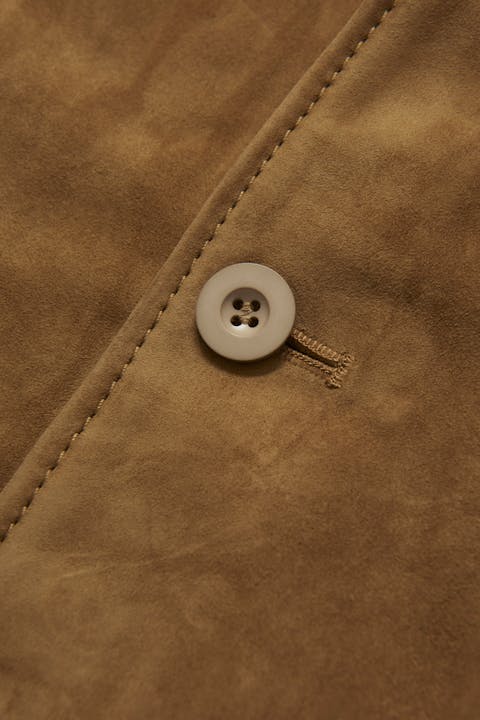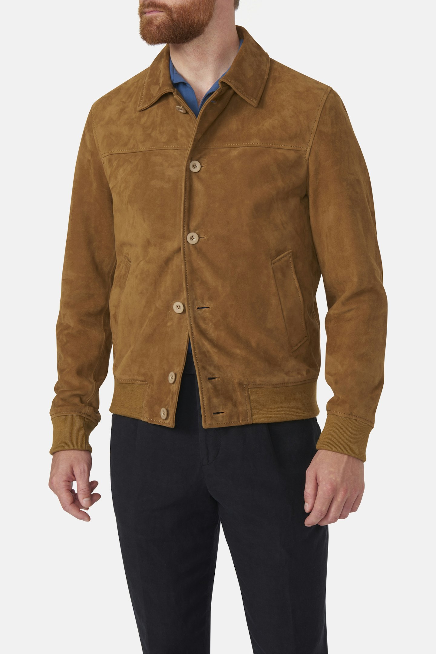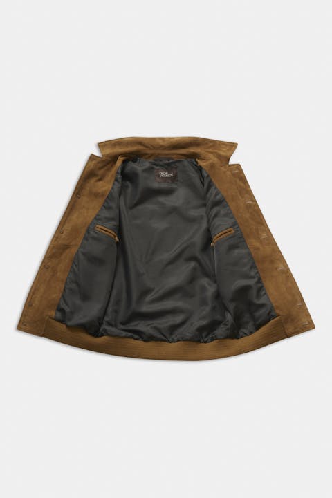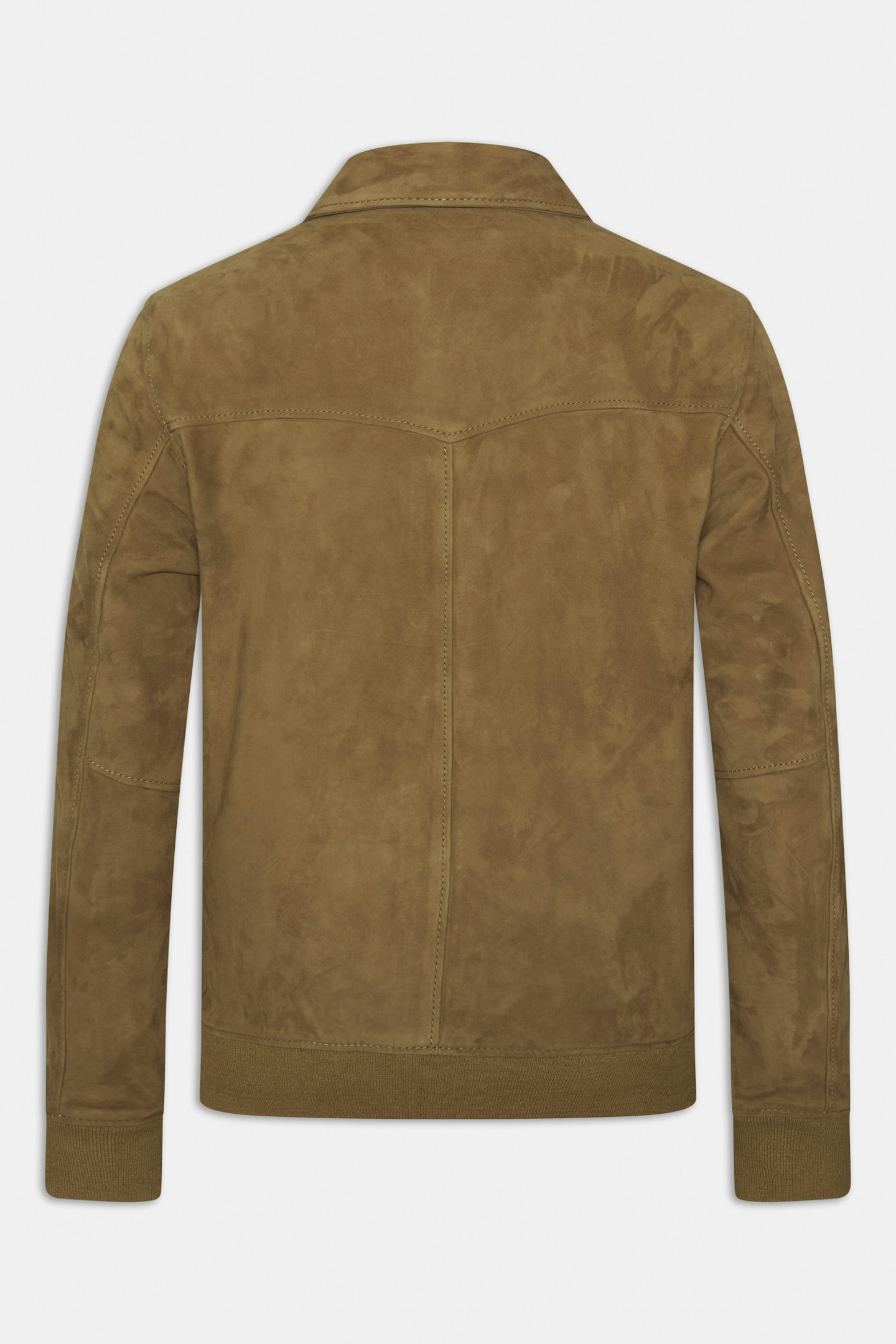 Semsket skinnjakke med elastiske mansjetter nederst på jakken, og ved mansjettene. Utstyrt med praktiske sidelommer, doble innerlommer og et tynt fôr av viskose. Vi anbefaler å gå opp en størrelse, da jakken er litt liten i størrelsen.