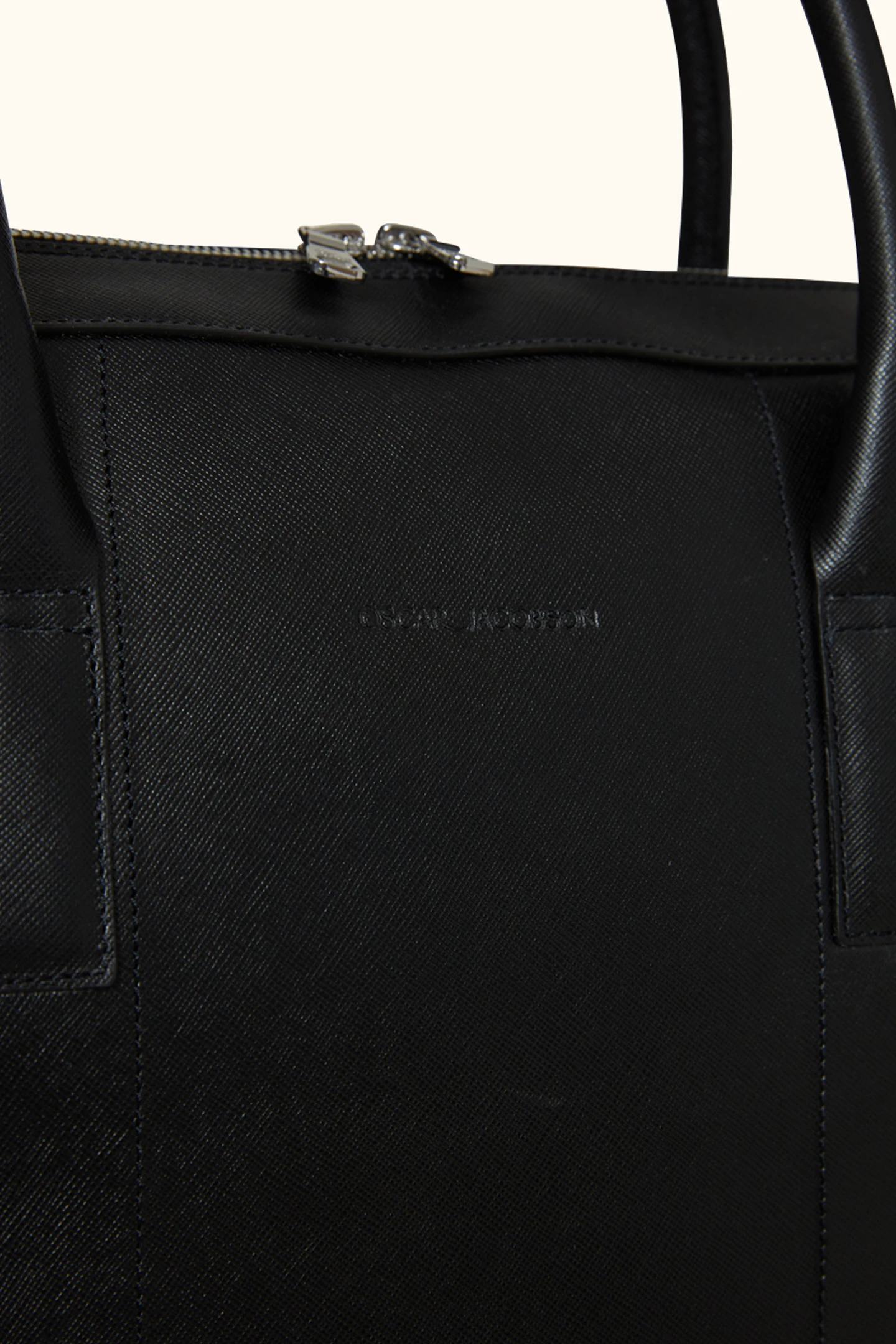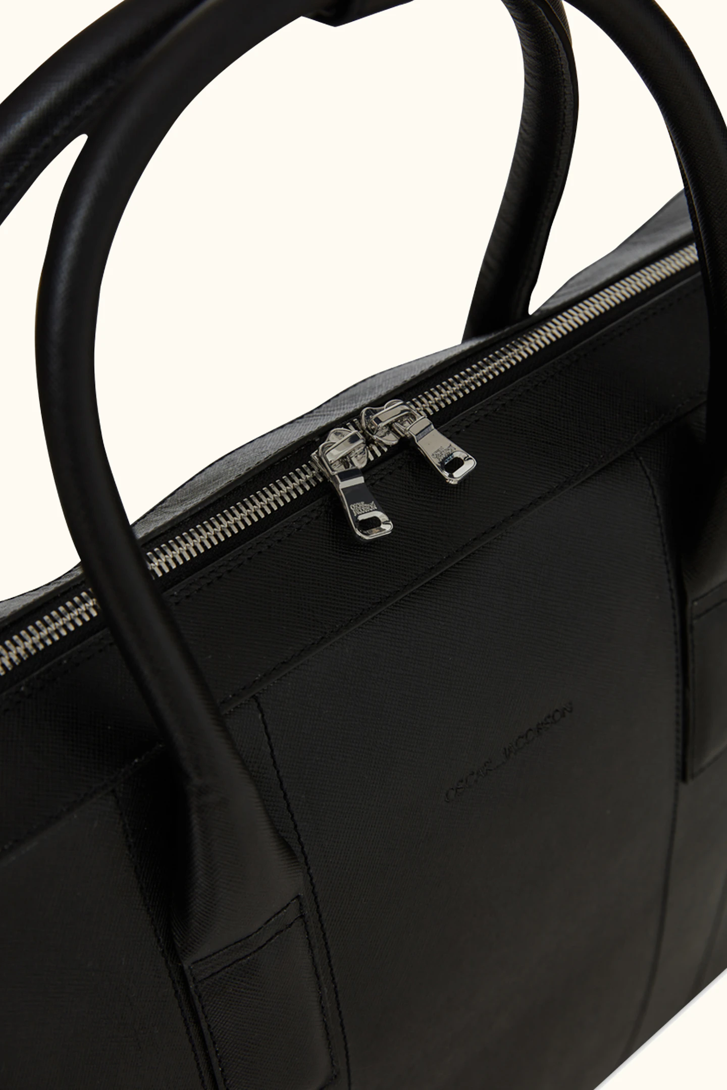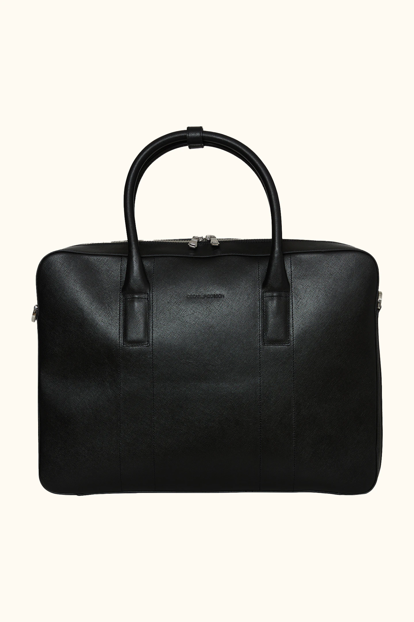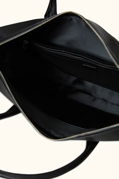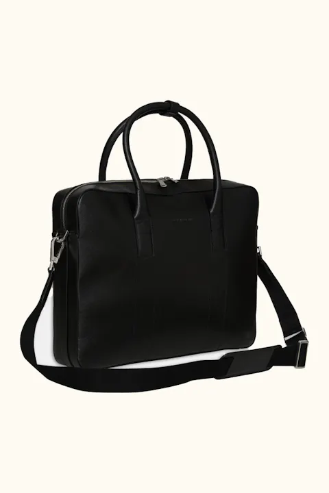 Håndlaget dokumentmappe i spansk Saffiano-lær, produsert i Almansa-regionen hvor de har en lang tradisjon med lærhåndverk. Mappen har fire indre lommer, plass til vår bærbare dataveske og leveres med en tilhørende justerbar skulderrem. Mappen er utviklet for å romme det du trenger på kontoret uten å ta for mye plass. Mål: 42x7x30 cm