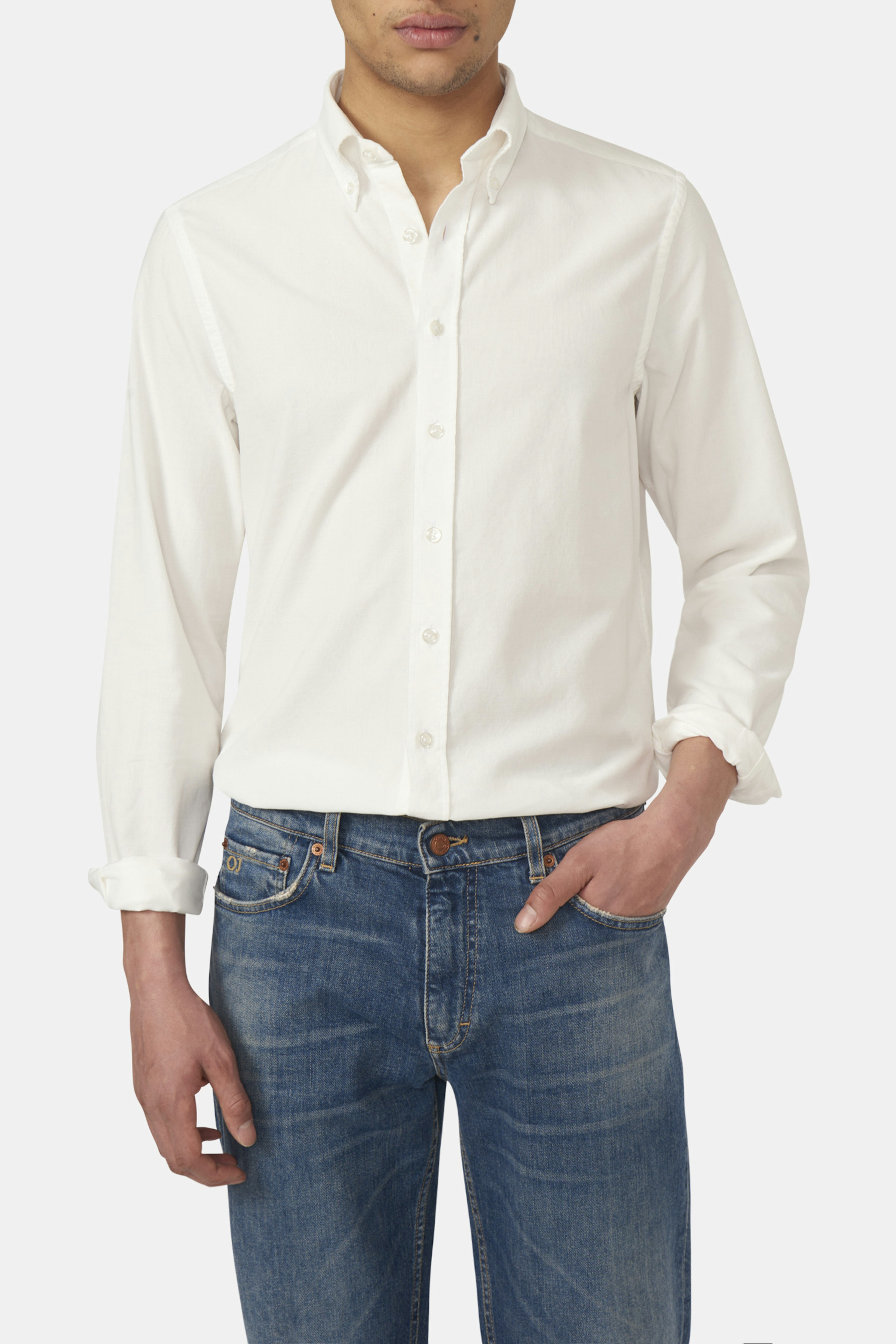 Smal stripete kordfløyelskjorte med button down-krage. Smal passform med en enkel mansjett nederst på ermene.