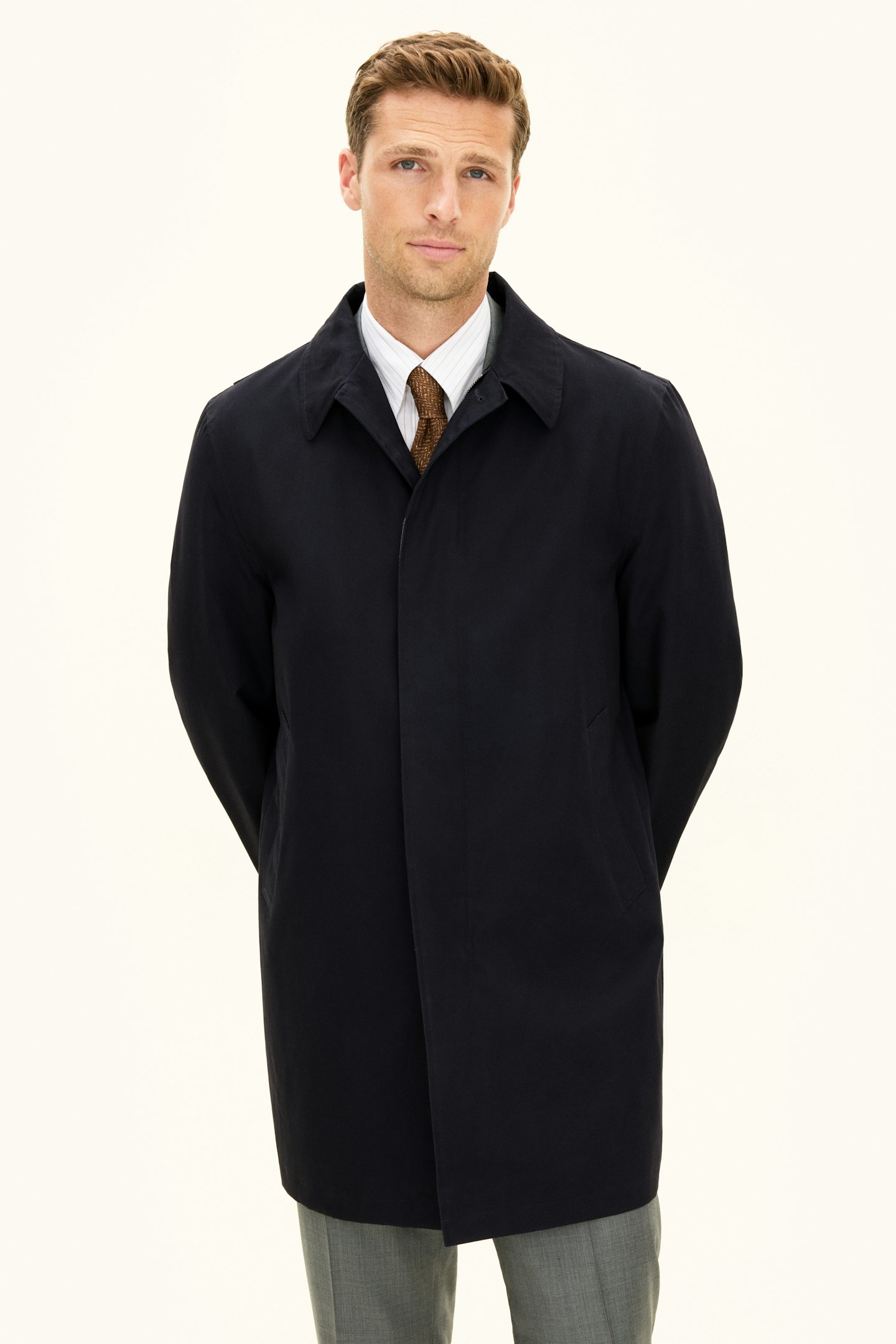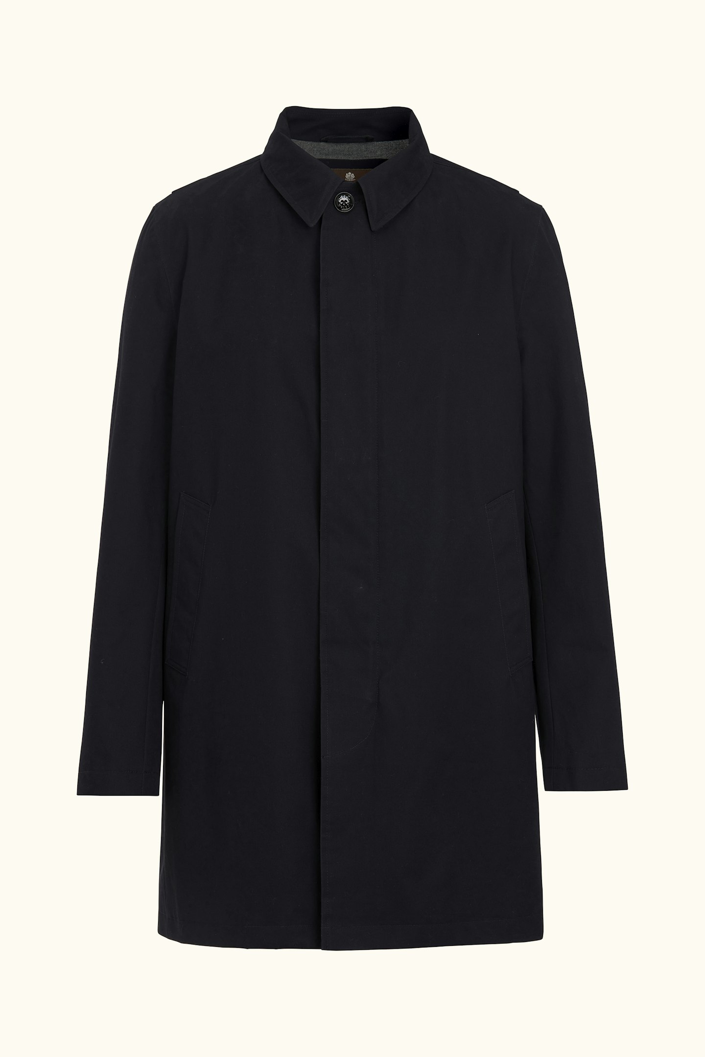 Denne klassiske Car Coat i bomullstwill er designet for å være et dekkende skallplagg til hverdags, og fungerer både til formell dress og avslappede jeans. I tillegg til det vannavvisende og vindtette ytterstoffet har frakken tapede sømmer over skuldre og rygg for å holde deg tørr i røffere værforhold. Innsiden av frakken er dekket med et melert bomullsfôr og inneholder tre innerlommer samt knapper for feste av våre liner-vester.