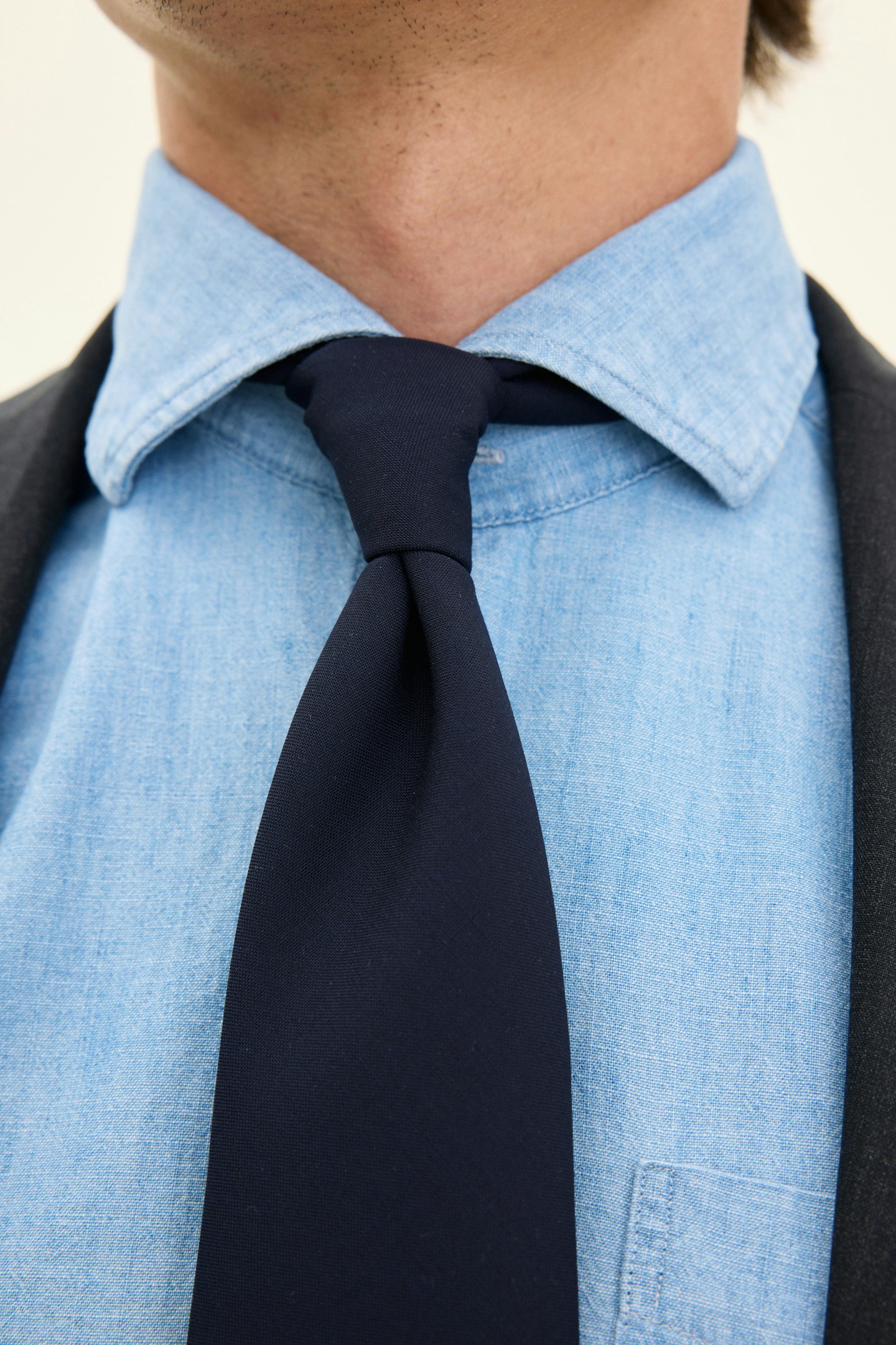 Ensfarget slips av ull fra veveriet Vitale Barberis Canonico. Produsert eksklusivt for Oscar Jacobson. Bredde: 8,5 cm.