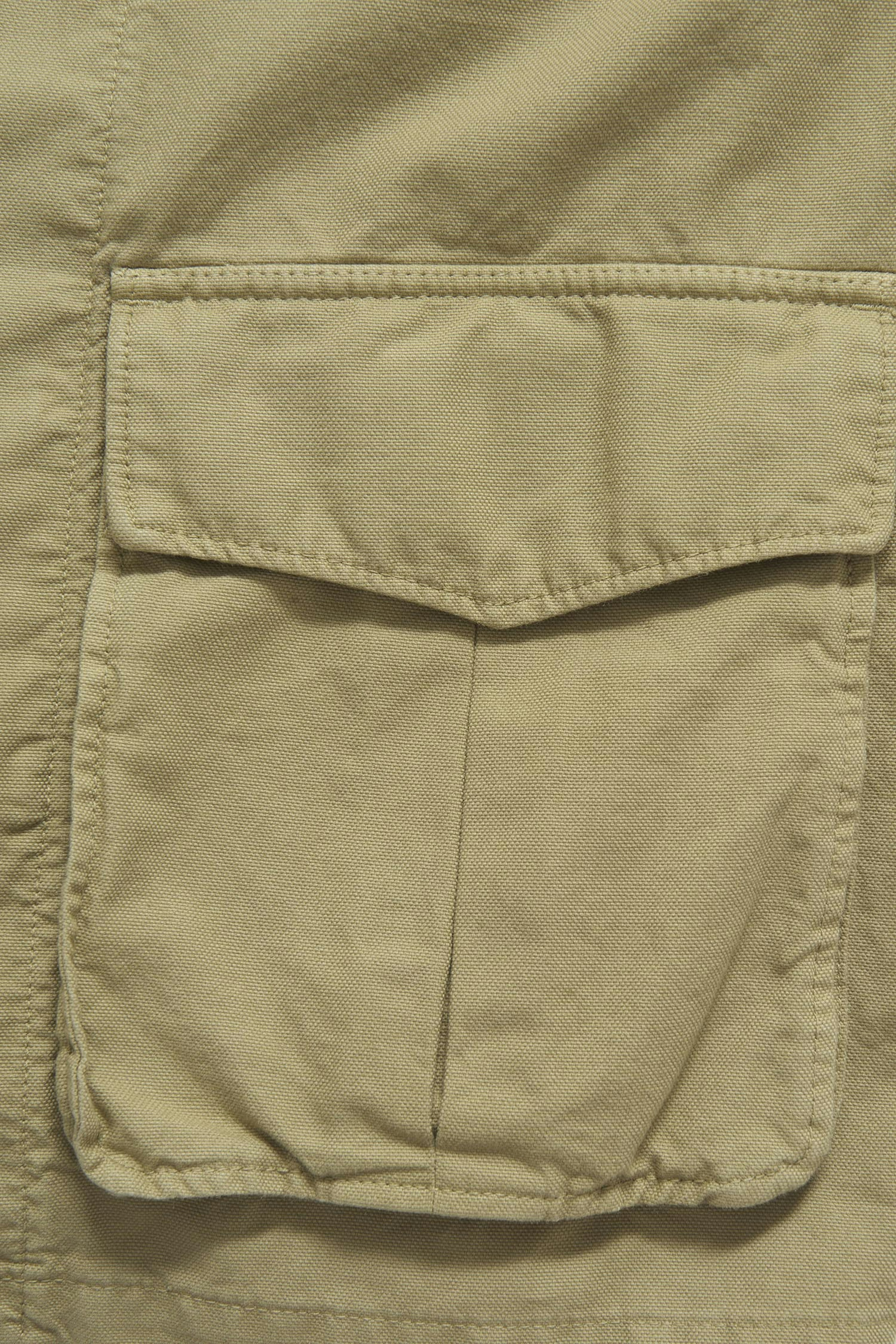 Jakke i safaristil med detaljer inspirert av arbeidsklær. Jakken er laget med doble midje- og brystlommer, utstyrt med skjult knappelukking. Her presentert i et robust bomullsmateriale med et vasket utseende.