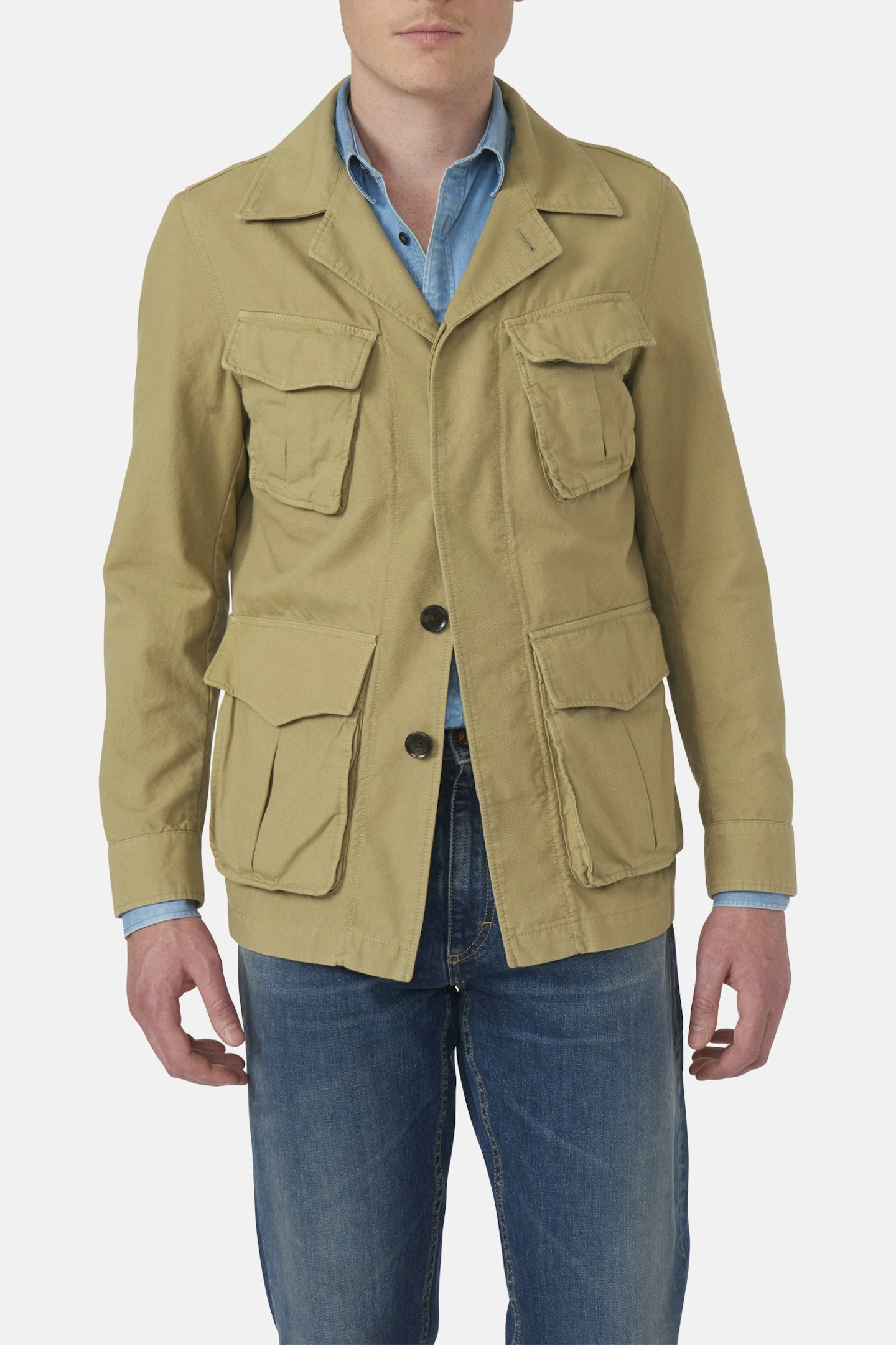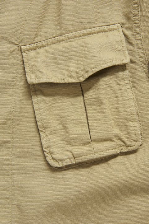 Jakke i safaristil med detaljer inspirert av arbeidsklær. Jakken er laget med doble midje- og brystlommer, utstyrt med skjult knappelukking. Her presentert i et robust bomullsmateriale med et vasket utseende.