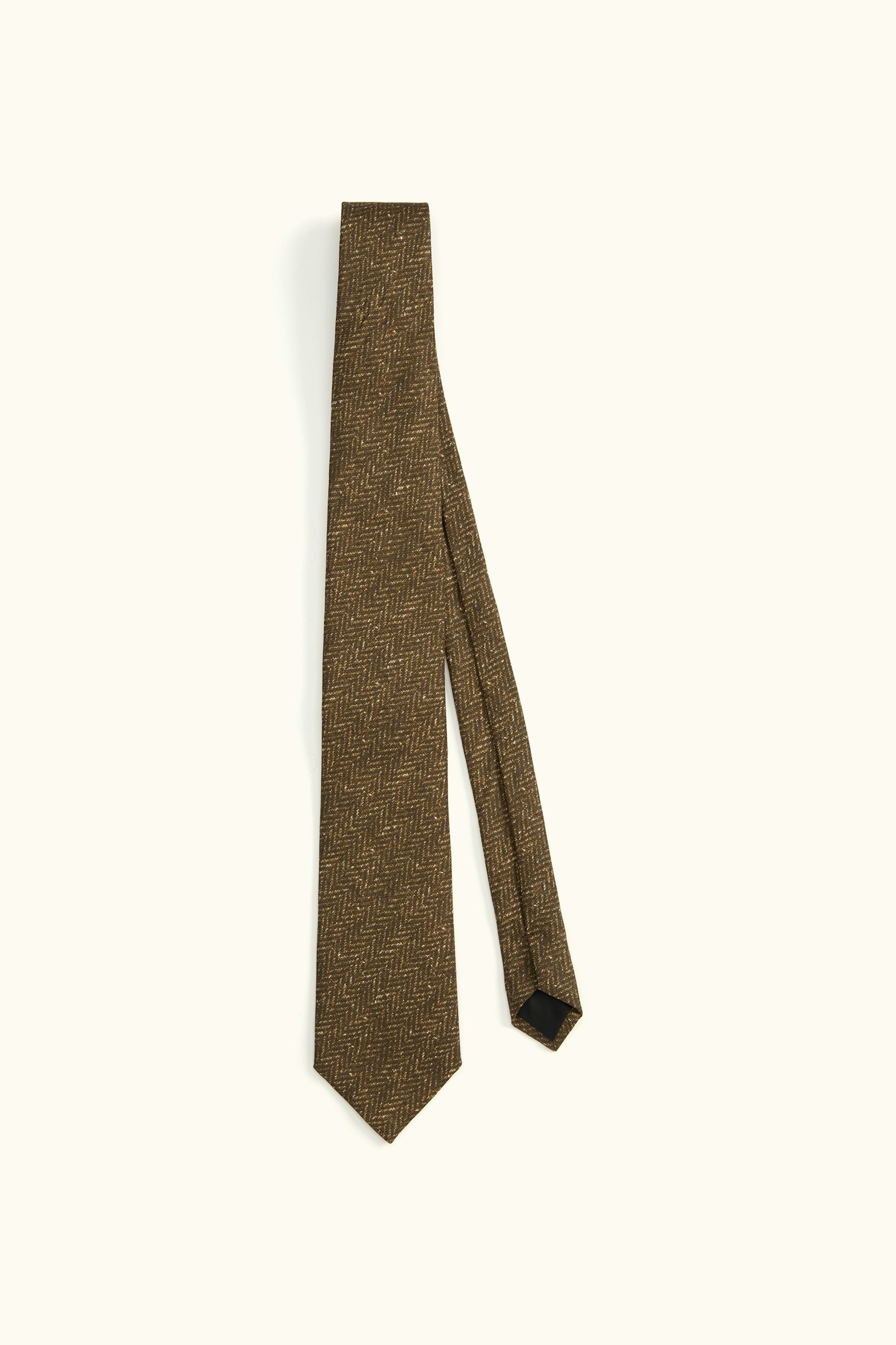 Et slips i linblanding med en subtil fiskebensstruktur. Den strikkede silkefølelsen gir en elegant overflate med en lett tekstur. Et tidløst tilbehør som løfter både skjorter og jakker.