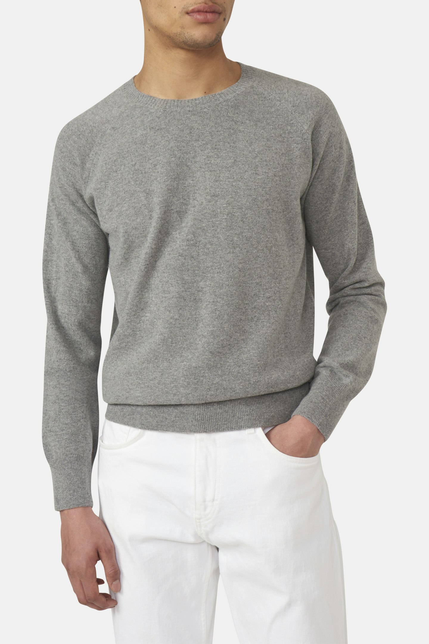 Strikket rundhalset genser med en raglan-inspirert skulder, økt passform og ribbestrikk. Laget av et tynt men varmende ullstoff.