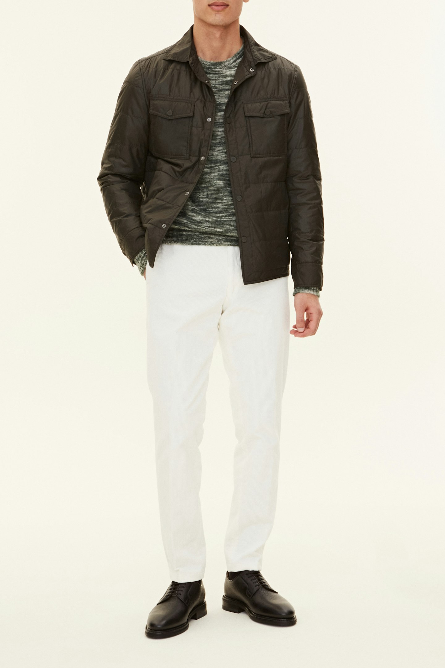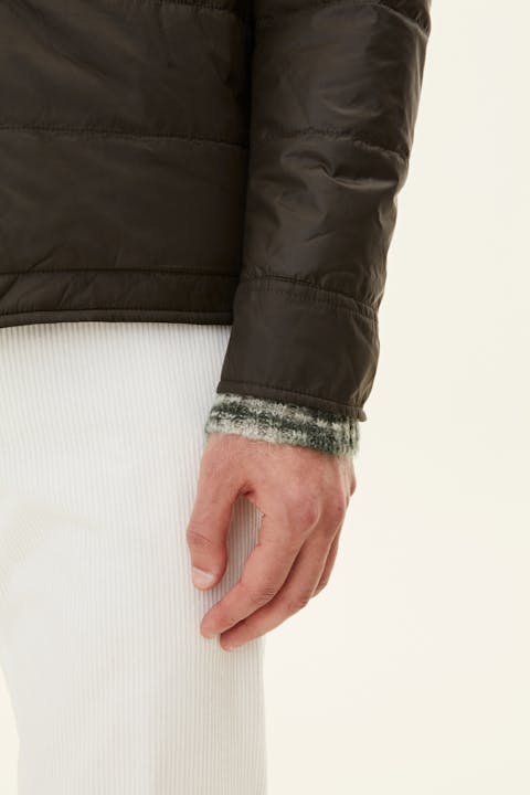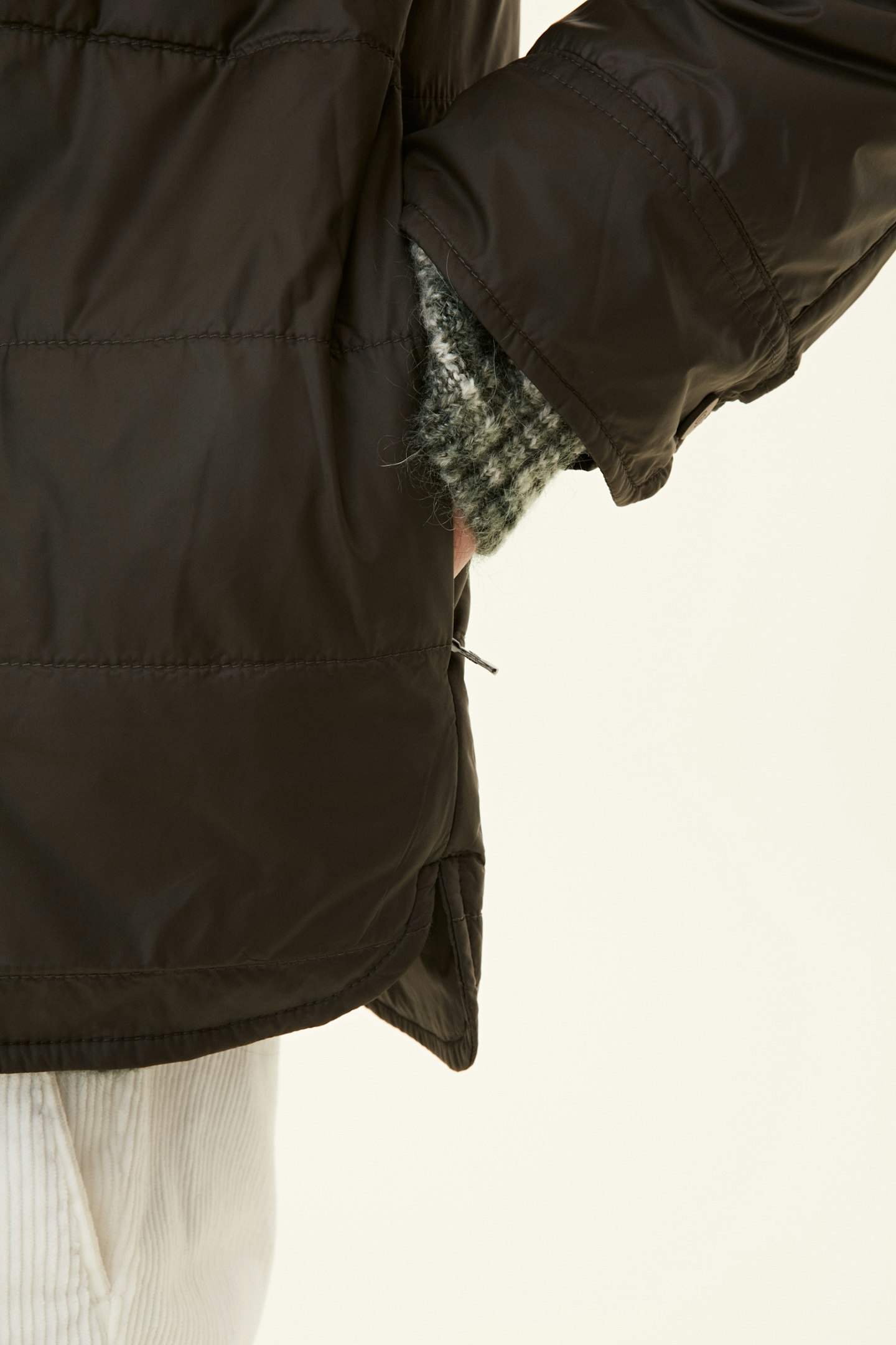 Vår Padded Shirt Jacket i Featherweight Nylon er et lett og allsidig plagg som både fungerer som ytterplagg eller lagerplagg til alt fra strikkede gensere til fine skjorter. Utover det vannavvisende og isolerende ytterstoffet er plagget fôret med en 60 grams plantebasert Sorona Padding for å effektivt holde deg varm i kaldere klima. Innsiden av parkasen har et slitesterkt ripstop-fôr med tre innerlommer. Jakken har også fleece-fôrede sidelommer for å holde hendene dine varme. Featherweight Nylon er vår vannavstøtende lettvektsmateriale utviklet for å holde varmen inne uten å ta for mye plass når man bruker jakken under andre plagg.
