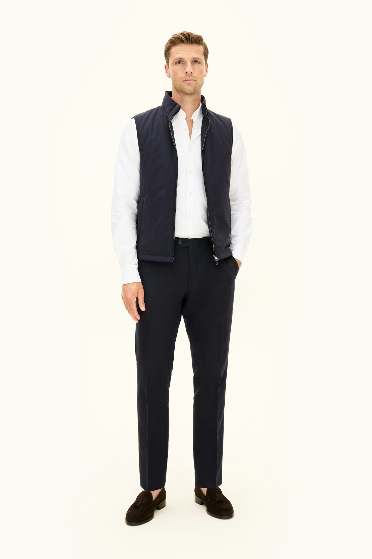 Vår lett vatterte vest med glidelås i stretch-nylon er et allsidig lett plagg som fungerer både som ytterplagg og mellomlag. I tillegg til det vannavvisende og isolerende ytterstoffet er den fôret med en 80 GSM plantebasert Sorona-vattering. Innsiden av vesten er dekket av et slitesterkt ripstop-fôr og inneholder tre innerlommer. Light Stretch Nylon er vårt vannavvisende lettvektsmateriale, utviklet for å være et bevegelig og robust ytterstoff som står imot elementene.
