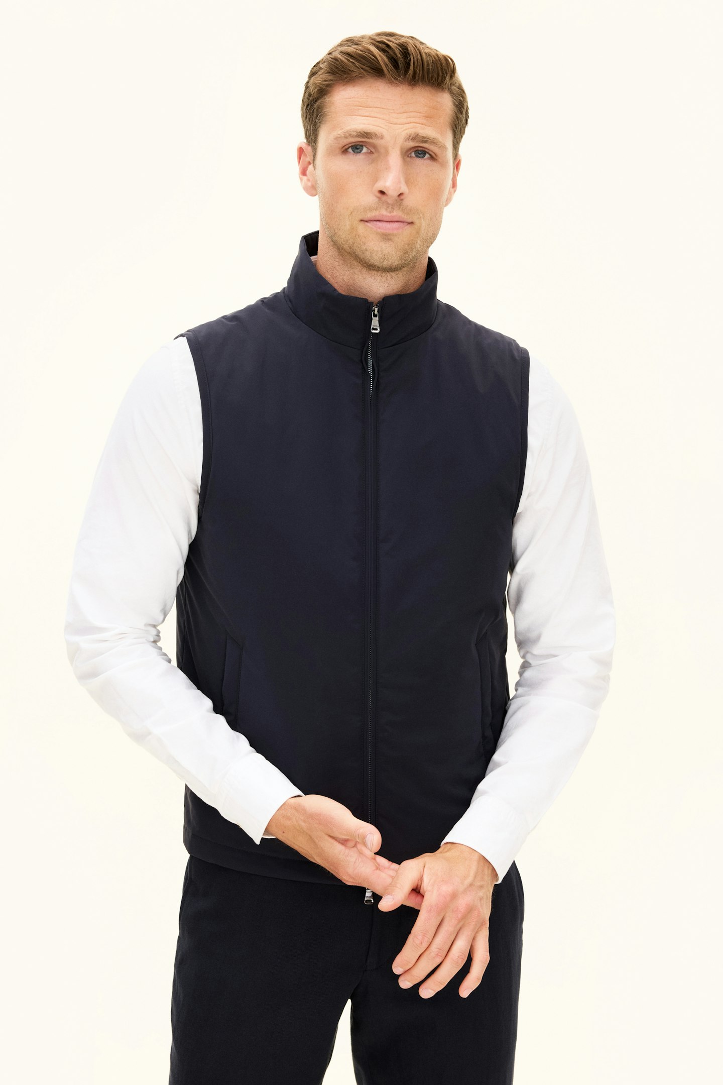 Vår lett vatterte vest med glidelås i stretch-nylon er et allsidig lett plagg som fungerer både som ytterplagg og mellomlag. I tillegg til det vannavvisende og isolerende ytterstoffet er den fôret med en 80 GSM plantebasert Sorona-vattering. Innsiden av vesten er dekket av et slitesterkt ripstop-fôr og inneholder tre innerlommer. Light Stretch Nylon er vårt vannavvisende lettvektsmateriale, utviklet for å være et bevegelig og robust ytterstoff som står imot elementene.