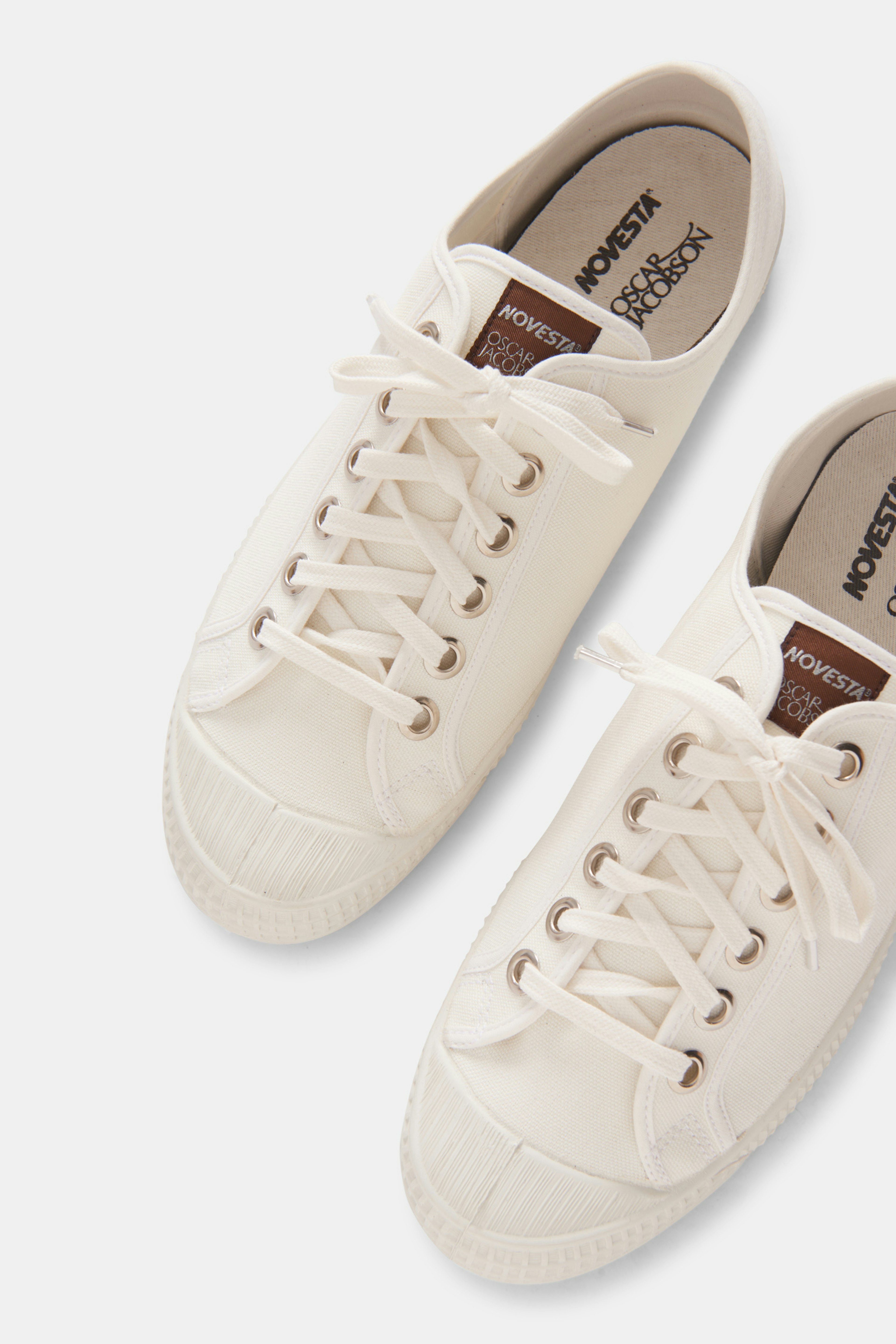 Håndlagde sko som er tidløse og har et aktuelt design, i et eksklusivt samarbeid med Novesta. Novesta har et sterkt fokus på langsiktighet og bærekraft. Skoen er laget av 100% bomull og sålen er laget av gummi. Kun tilgjengelig på oscarjacobson.com og i våre egne butikker.