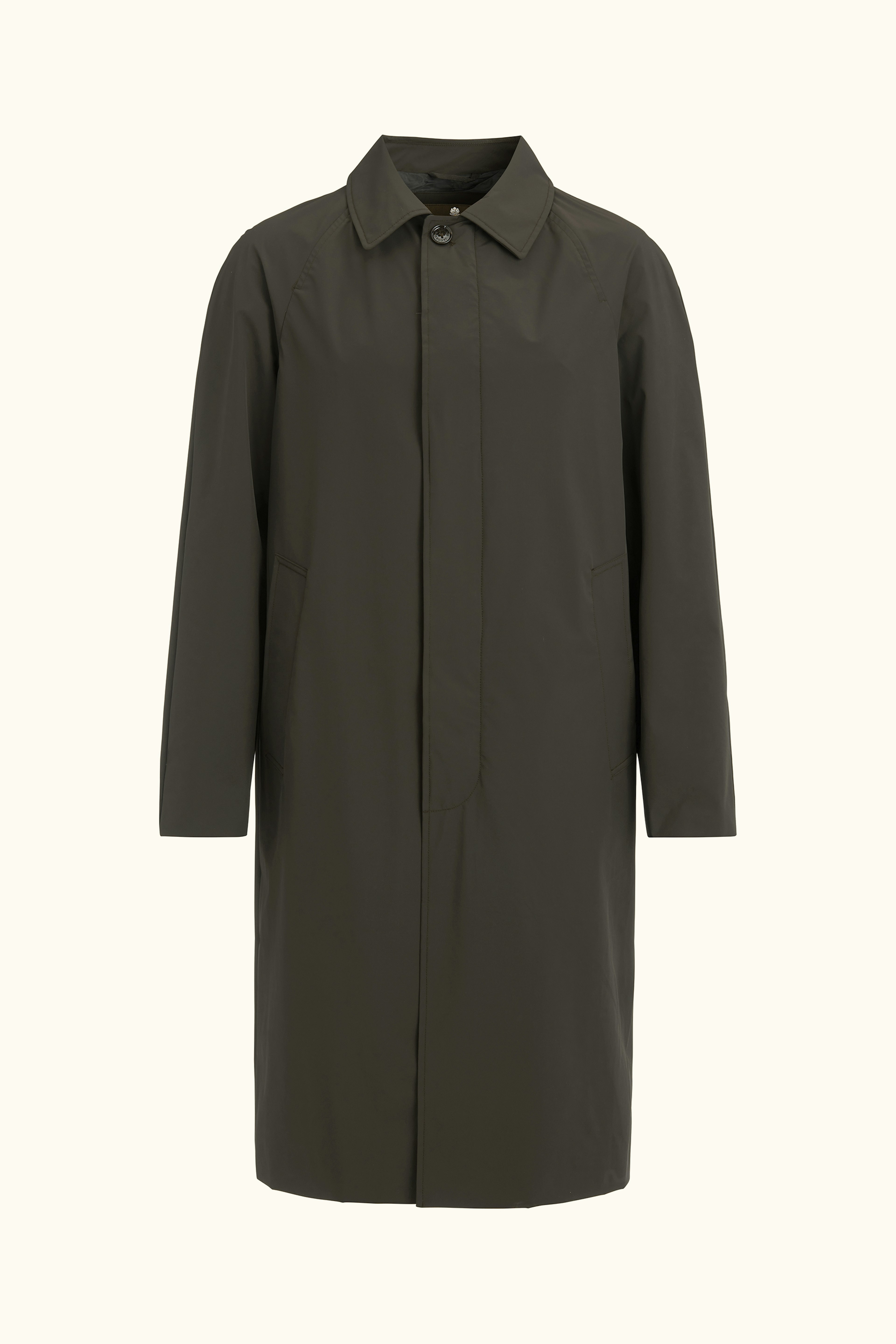 Vår klassiske Raglan Coat i Nylon Shell er designet for å være et heldekkende skallplagg til hverdagen og fungerer både til formelle dresser og avslappede jeans. I tillegg til det vannavvisende og vanntette ytterstoffet har frakken teipede sømmer i skuldersømmen for å holde deg tørr i tøffere vær. Innsiden av frakken er trukket med et slitesterkt ripstop-fôr og kommer med tre innerlommer samt knapper til å feste våre liner-vester. Frakken har en myk raglan-skulder, ekstra lengde og sydde splitter nederst for å tåle vær enda bedre. Nylon Shell er vårt trelags skallmateriale designet for å beskytte mot vær og vind uten å gå på kompromiss as mobilitet, pusteevne eller stil.