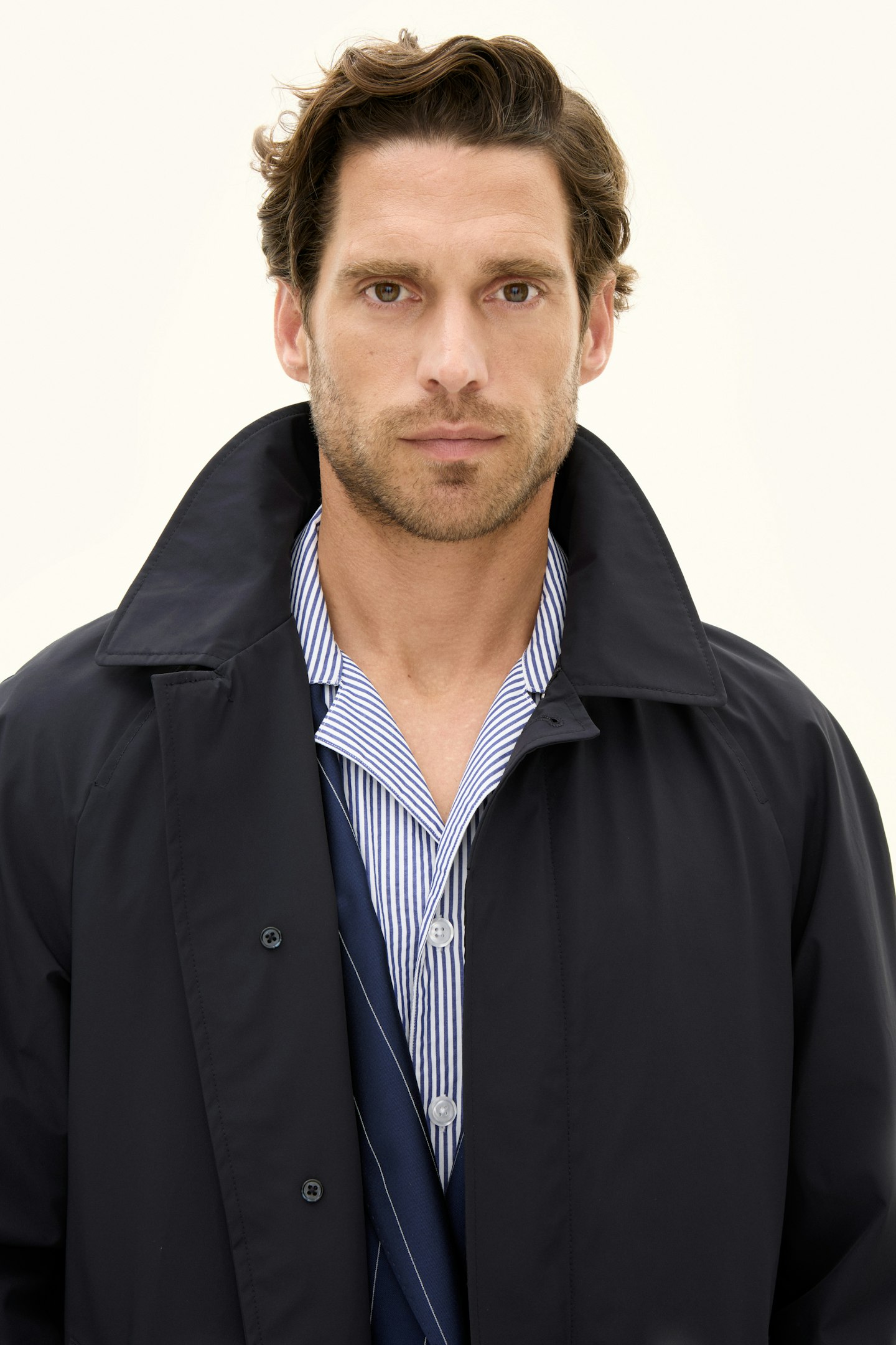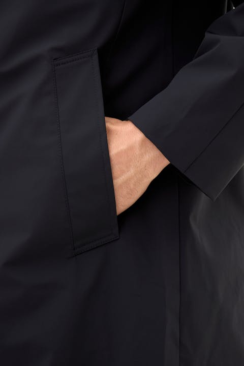 Vår klassiske Raglan Coat i Nylon Shell er designet for å være et heldekkende skallplagg til hverdagen og fungerer både til formelle dresser og avslappede jeans. I tillegg til det vannavvisende og vanntette ytterstoffet har frakken teipede sømmer i skuldersømmen for å holde deg tørr i tøffere vær. Innsiden av frakken er trukket med et slitesterkt ripstop-fôr og kommer med tre innerlommer samt knapper til å feste våre liner-vester. Frakken har en myk raglan-skulder, ekstra lengde og sydde splitter nederst for å tåle vær enda bedre. Nylon Shell er vårt trelags skallmateriale designet for å beskytte mot vær og vind uten å gå på kompromiss as mobilitet, pusteevne eller stil.