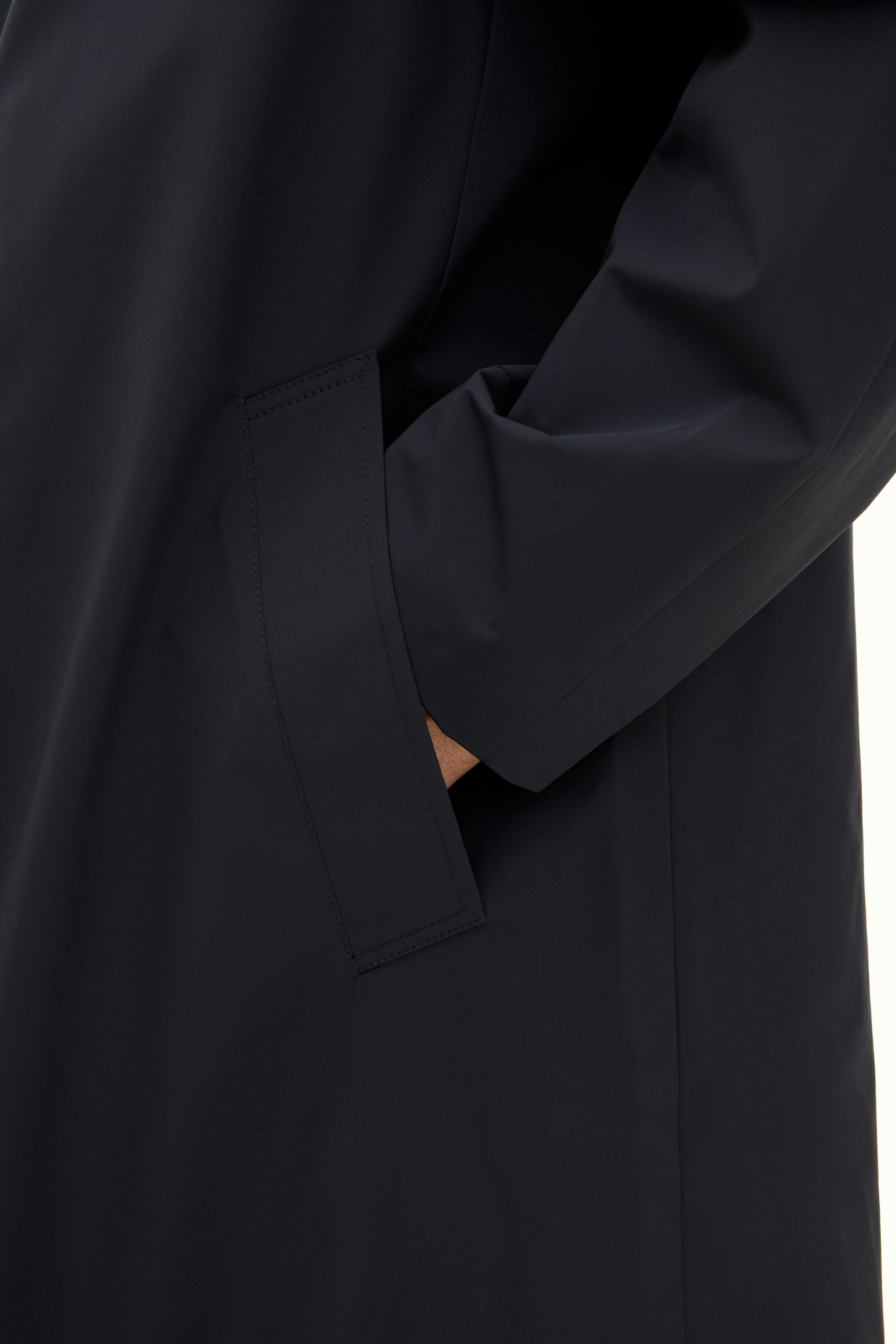 Vår klassiske Raglan Coat i Nylon Shell er designet for å være et heldekkende skallplagg til hverdagen og fungerer både til formelle dresser og avslappede jeans. I tillegg til det vannavvisende og vanntette ytterstoffet har frakken teipede sømmer i skuldersømmen for å holde deg tørr i tøffere vær. Innsiden av frakken er trukket med et slitesterkt ripstop-fôr og kommer med tre innerlommer samt knapper til å feste våre liner-vester. Frakken har en myk raglan-skulder, ekstra lengde og sydde splitter nederst for å tåle vær enda bedre. Nylon Shell er vårt trelags skallmateriale designet for å beskytte mot vær og vind uten å gå på kompromiss as mobilitet, pusteevne eller stil.