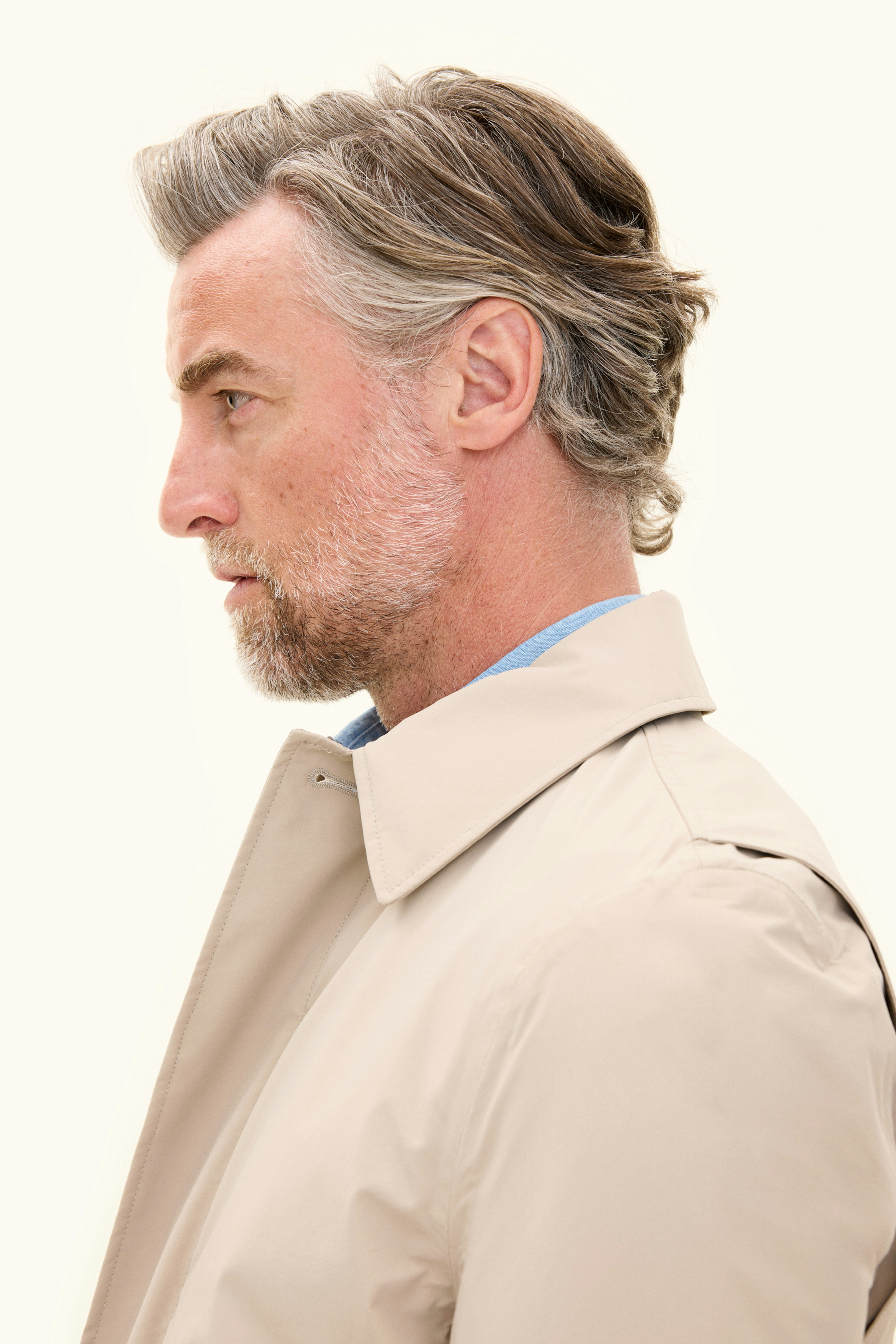 This classic Car Coat in Nylon Shell is designed to be an all-encompassing outerwear piece for your everyday, suitable for both formal suits and casual jeans. In addition to the water-repellent and waterproof outer fabric, the coat features taped seams in the shoulders and back to keep you dry in tougher weather conditions. The inside of the coat is lined with durable ripstop fabric and includes three inner pockets as well as buttons for attaching our liner vests. Nylon Shell is our three-layer outer shell material, developed to provide protection against weather and wind without compromising on mobility, breathability, or style.