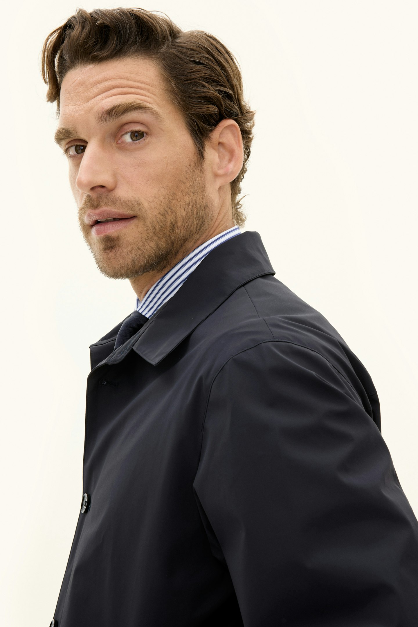 Denne korte Car Coat i vårt innovative trelagsmateriale Nylon Shell er designet for å være det ultimate skallplagget i hverdagen din. Den kombinerer funksjon og stil, noe som gjør den like naturlig over en formell dress som til et par avslappede jeans. Det vannavvisende og vanntette ytterstoffet beskytter deg mot regn og ruskevær, mens det slitesterke ripstop-fôret på innsiden gir økt holdbarhet. For ekstra funksjonalitet har jakken tre praktiske innerlommer. Med sin balanserte blanding av værbeskyttelse, bevegelsesfrihet og pusteevne er dette et plagg du kan stole på – uansett vær.