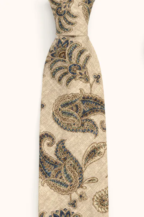 Et silkeslips med et klassisk paisley-mønster som gir karakter og dybde. Den vevde silke kvaliteten gir en myk glans og et sofistikert utseende. Et perfekt tilbehør for mer formelle anledninger.